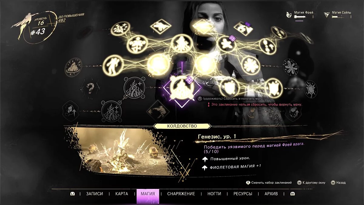 Сначала от количества заклинаний будут разбегаться глаза, но понимание местной системы боя приходит довольно быстро. Половина скиллов Фрей, именно так зовут героиню, атакующие, а другая поддерживает ее боеспособность. «Магия поддержки» восстанавливает здоровье, отвлекает противников или усиливает урон. У каждого заклинания определенное время восстановления, поэтому простые можно использовать гораздо чаще, чем ультимативные.