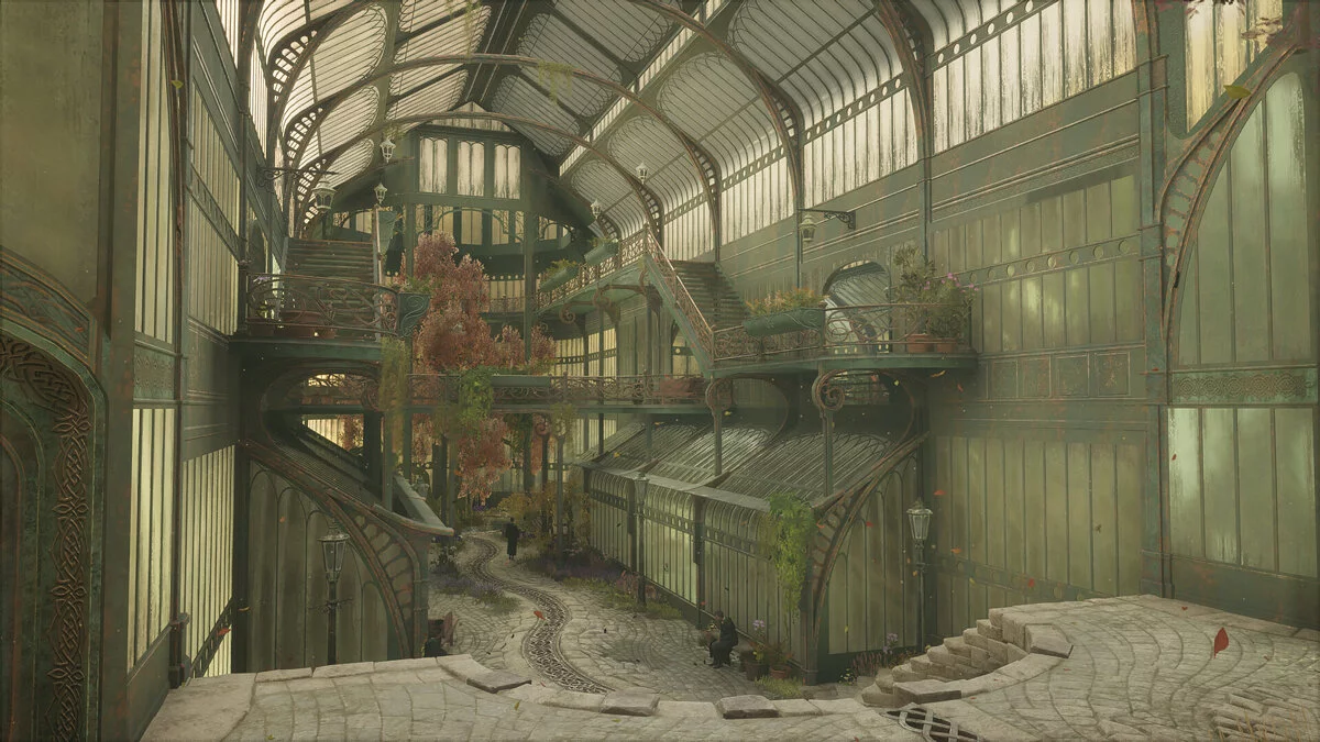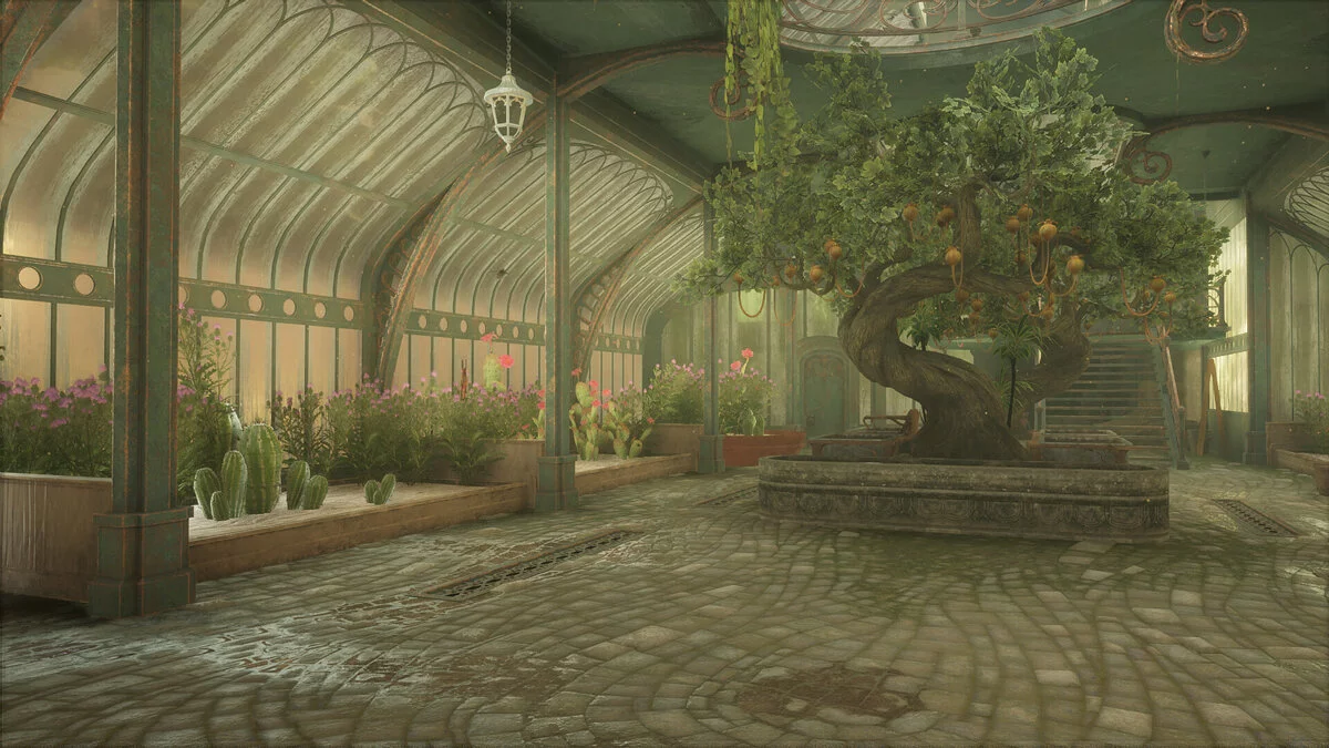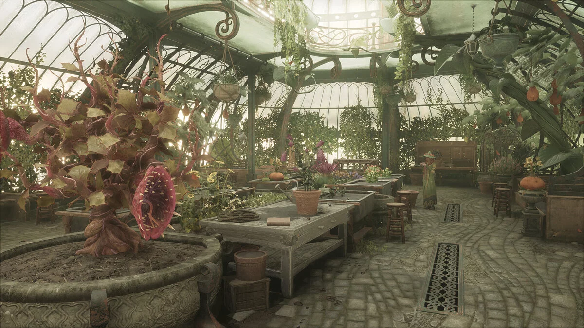 В Hogwarts Legacy теплицы — это скорее остекленный многоуровневый зимний сад со своей экосистемой. Магические растения соседствуют с обычной флорой из разных концов земли: кактусами, бамбуком и редкими породами деревьев.
