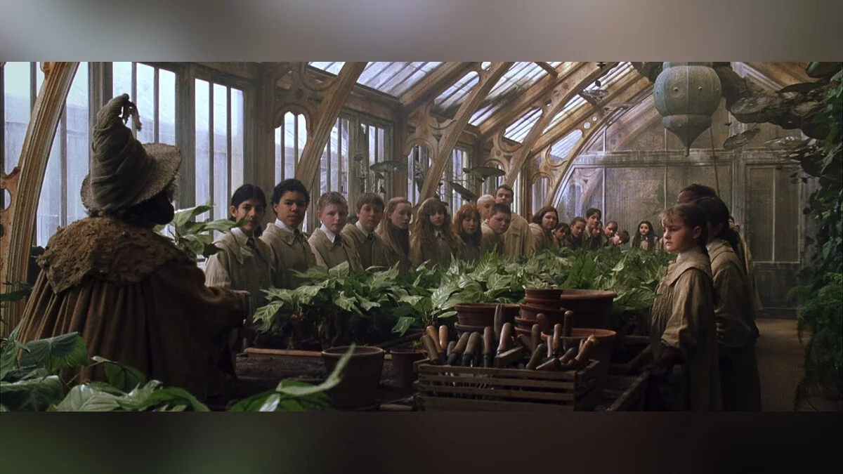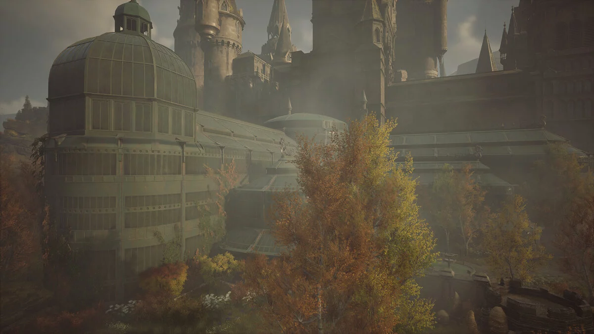 В фильмах мы редко видели кадры с теплицами Хогвартса, как снаружи, так и внутри. Здесь студенты изучают один из обязательных предметов — травологию, под руководством мадам Спраут (в фильмах) и Чесноук (Hogwarts Legacy). Разработчики из Avalanche Software по-новому взглянули на эту локацию в своём проекте.