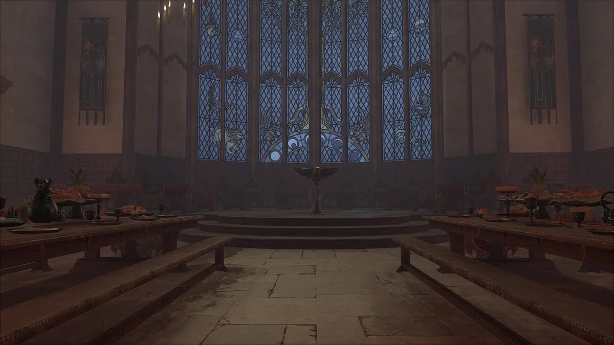 При этом изменений тоже достаточно. Камин, который отапливает столь большое помещение, переехал на другую сторону, а на его месте теперь двери, позволяющие выйти во внутренний двор замка. Визуально помещение кажется более коротким и компактным, нежели зал из фильмов.