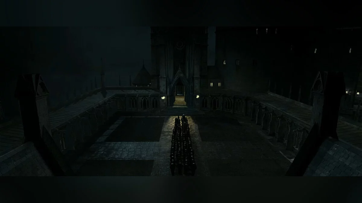 В Hogwarts Legacy этот двор расположен в другом месте. Он стал частью маршрута первокурсников — сбоку к нему подходят лестницы от Лодочного сарая, а примыкающие двери замка ведут прямо в большой зал. Двор, в отличии от варианта из фильмов, замкнут и не ведет к акведуку, на котором Гарри ломает Бузинную палочку. В остальном он старается копировать привычную зрителям версию.