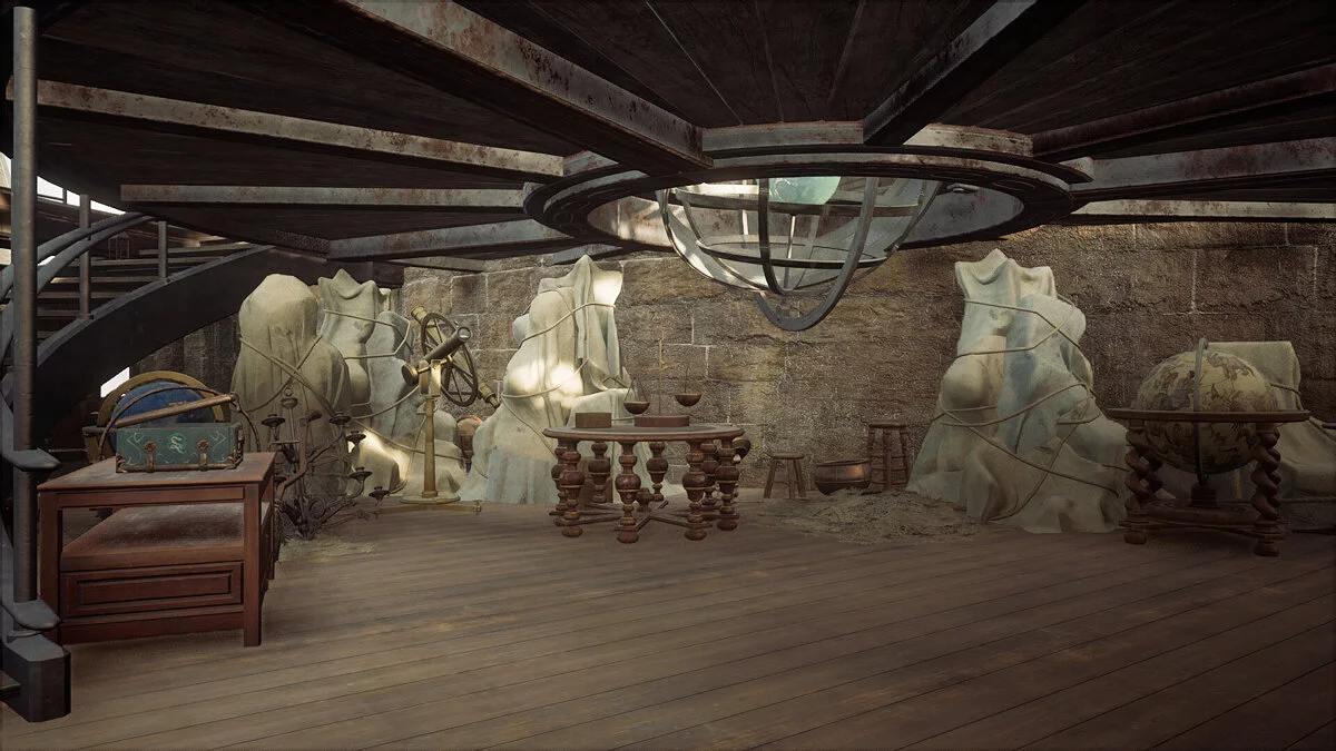 Общая компоновка помещения совпадает с версией из фильма. Центральный элемент, иллюстрирующий вращение небесных тел, почти не отличается от варианта, к которому мы привыкли, как и «подпол», где прятался Гарри Поттер.