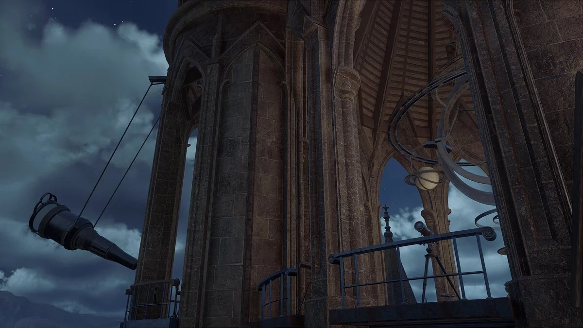 Некоторые элементы локации поменялись местами, но в целом игра хорошо копирует версию Астрономической башни из фильма, при этом «оживляя» её. Если прийти сюда днем, любители полетов на метлах будут периодически рассекать в опасной близости от строения, а если посетить локацию ночью — ученики, изучающие астрономию, займут несколько телескопов.