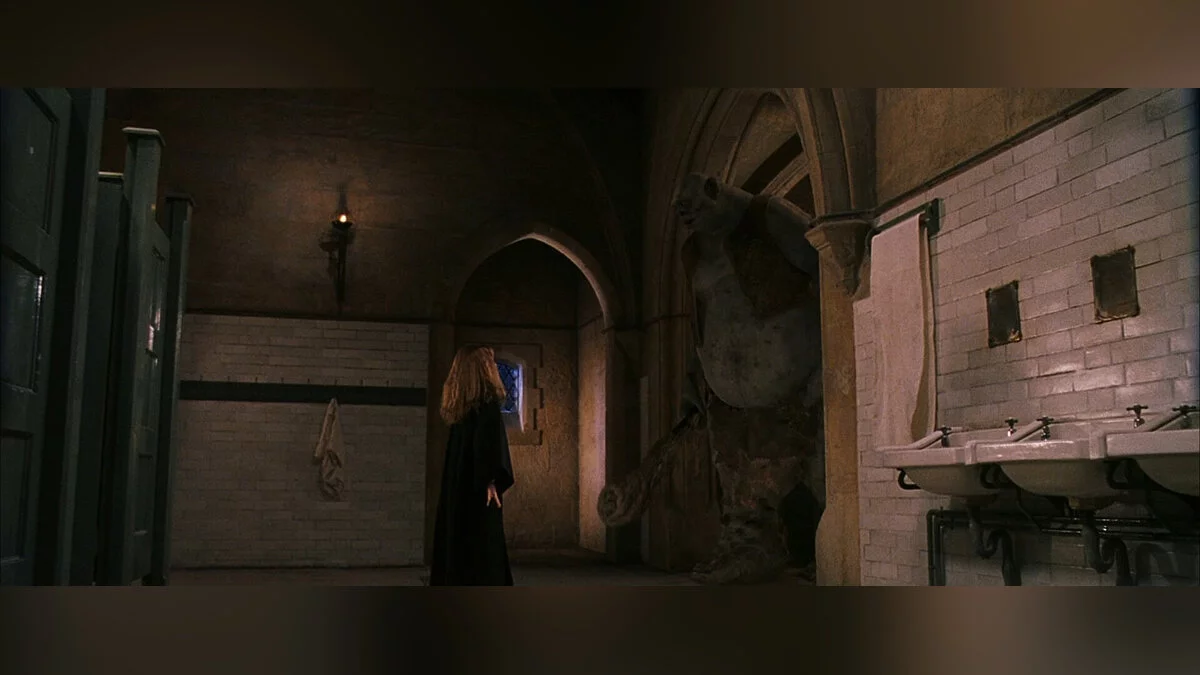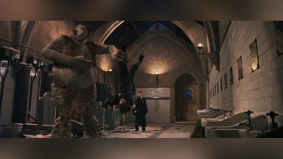 Гарри Поттер встречается с троллем буквально в первом семестре своего обучения в Хогвартсе. Квирелл, в попытках добраться до философского камня, выпускает одного тролля на Хэллоуин. Гарри и Рону удается победить существо и спасти Гермиону. Можно считать, что в этот момент и образовалось знаменитое Золотое трио.
