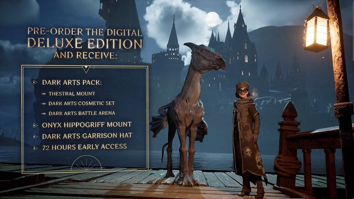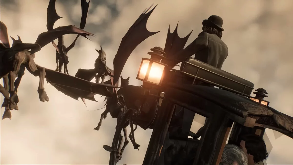 Этих созданий мы встречаем в первой же катсцене Hogwarts Legacy. Они запряжены в летающую карету, на которой главный герой должен прибыть в Хогвартс. Изначально фестралы невидимы, но после смерти одного из попутчиков, эти создания появляются на наших глазах.