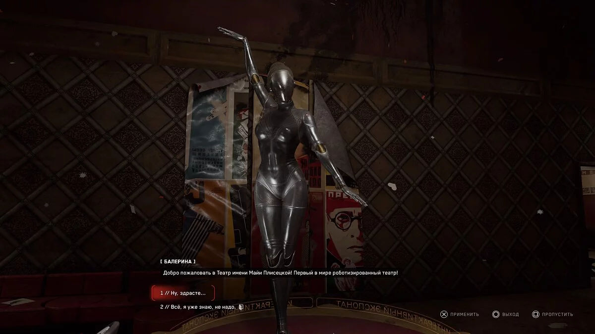 Во время преследования Петрова игрок попадает в театр, где все роли исполняют девушки-роботы, названный в честь Майи Плисецкой. Эта женщина считается одной из самых выдающихся балерин прошлого века. Её удостоили множества государственных наград и в честь неё организовали международный конкурс «Майа». Между тем, в реальности театра имени Плисецкой никогда не существовало.