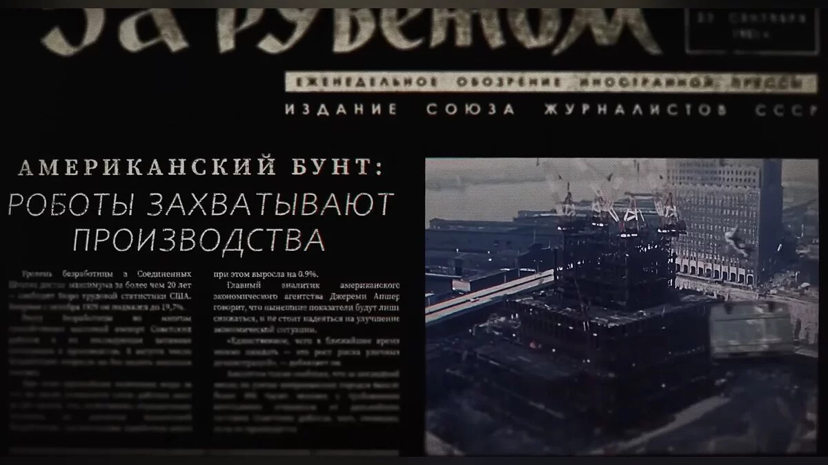 По отдельным записям можно сделать вывод, что Соединенные Штаты даже в альтернативном мире не очень ладили с СССР. Например, один из сотрудников говорит, что провел экскурсию для американского журналиста. Тот пришел в ужас от увиденного, однако наш специалист весело шутит, что ждать проблем не стоит. Наложат очередные санкции и закупят еще одну партию машин. ХРАЗ также упоминает, что многие американцы недовольны увеличивающимся количеством роботов. Безработица растёт и там.