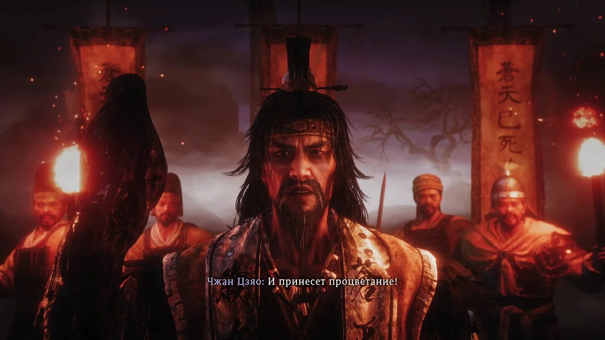 Все эти важные исторические персонажи пафосны и безумны, но не влияют на сюжет и повествование. Каждая катсцена — бездарный скетч с гипертрофированным сюрреализмом. Следить за сюжетом Wo Long становится невыносимо уже после третьей миссии, а градус бреда в последующих уровнях только растёт.