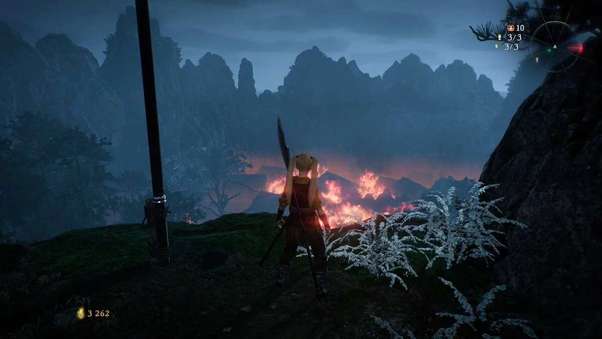 Куда сильнее раздражает система реализации духа — ресурса, который можно потратить на заклинания, специальные способности боевых искусств и одноименные атаки. Накапливать его нужно путем обшаривания локации в поисках особых флагов, побеждая врагов и добивая их атаками с критическим уроном. Обычно в одной миссии можно «нафармить» 25 уровней. За каждую смерть героя будут отнимать уровни духа. Благодаря вышеупомянутым флагам вы сможете ограничить это снижение до определенного количества. При этом у каждого противника есть свой ранг духа, и если он выше вашего, то и урона будет наносить намного больше. Не набрали нужное количество к битве с финальным боссом? Готовьтесь умирать с двух критических ударов. Без фарма очков духа пройти игру затруднительно, а в режиме «Новая игра +» и вовсе нереально. Вдобавок этот ресурс позволяет зачаровывать оружие стихийным модификатором, наносить мощные удары по площади и дает уникальные способности для определенных видов мечей и топоров.