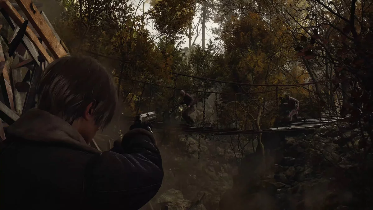 QTE с падающим камнем заменили на скриптовый уворот, а вот деревенщин на мосту оставили. Путь до связанного Луиса изменили довольно сильно, хоть и сохранили все препятствия в виде ловушек и растяжек.