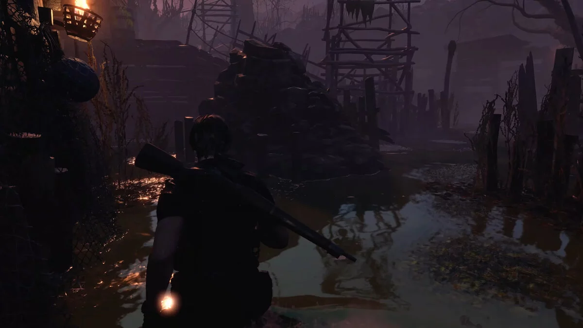 Разработчики ремейка уничтожили башню рядом с часовней, чтобы изменить внешний облик локации. В оригинале, когда Леон возвращается к часовне, все без изменений.