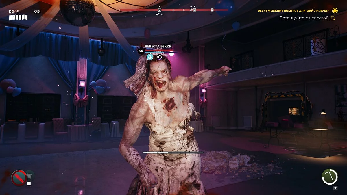 При этом видно, что изначально у игры был довольно серьезный тон, который принудительно разбавили шутками, гэгами и сатирой. Первые часы Dead Island 2, невзирая на абсурдные ситуации, ощущаются крепким низкобюджетным фильмом. Здесь есть намеки на драму, взаимоотношения между неигровыми персонажами, а некоторых героев даже становится жаль после их смерти. Но этих моментов так мало, что их можно пересчитать по пальцам. Все остальное — сплошная безвкусная комедия с черным юмором.