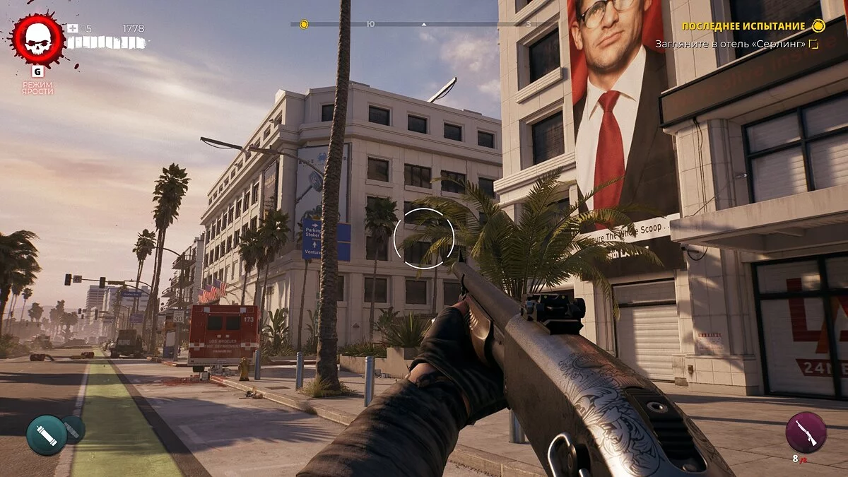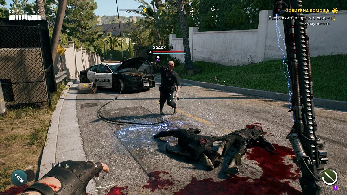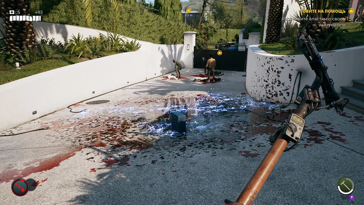 Игровой процесс Dead Island 2 мало чем отличается от первой части. Вы изучаете обширные локации, сражаетесь с ордами зомби и выполняете квестовые поручения. Боевая система поделена на два типа — ближний и дальний бой. С первым приходится возиться больше половины всего прохождения, пока по сюжету не открываются винтовки и дробовики, способные убить противника с одного прицельного выстрела в голову. Да, ближний бой более насыщенный и многогранный, но из-за монотонного избиения толп зомби на протяжении первых 15 часов все веселье улетучивается и превращается в рутину.