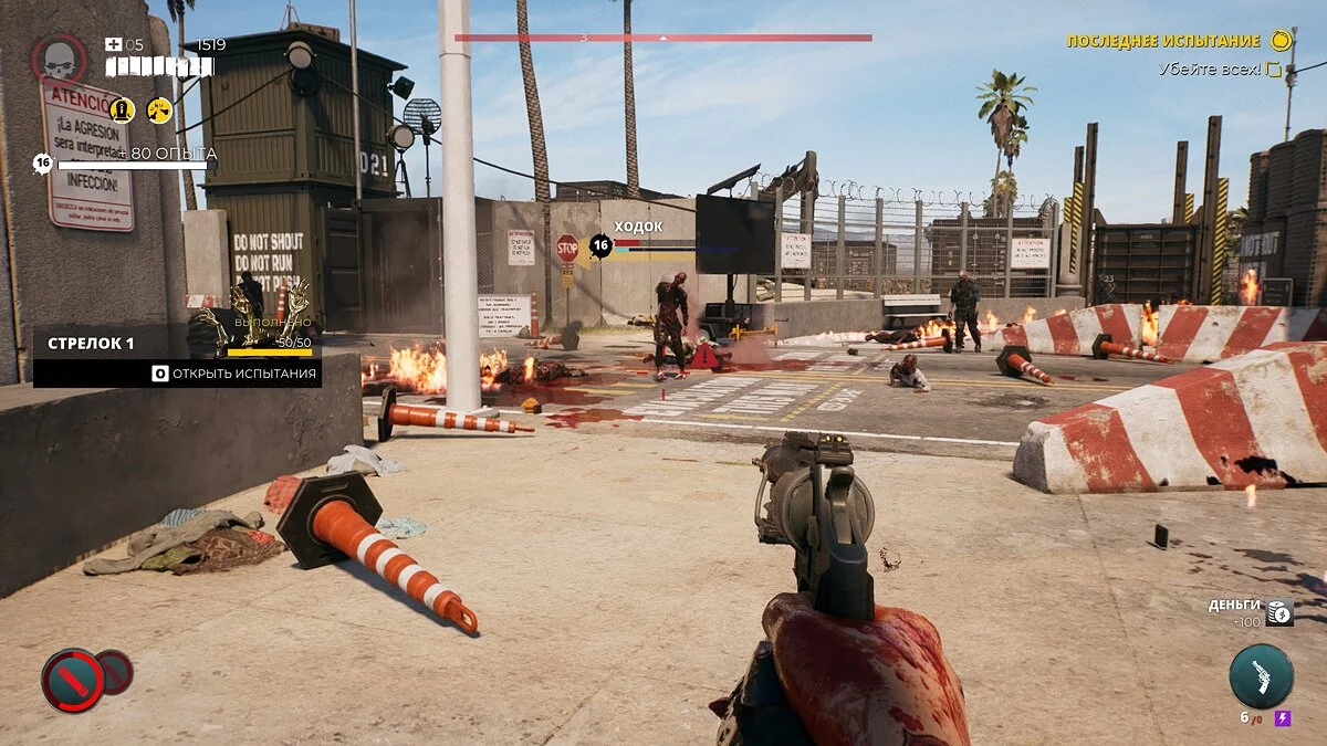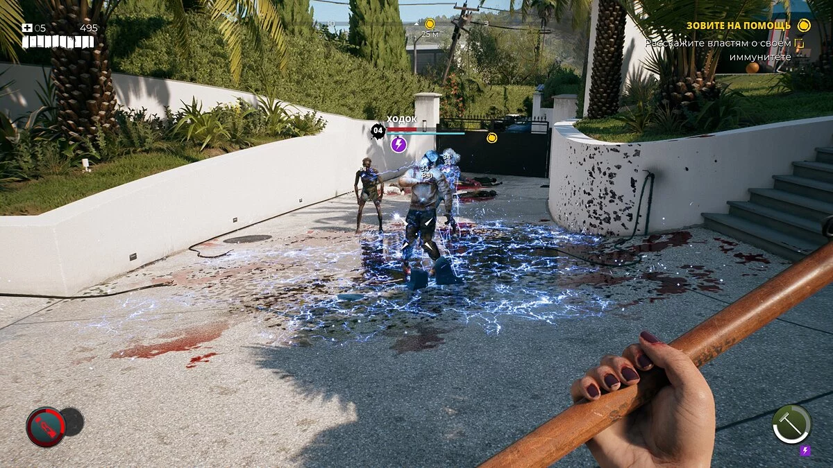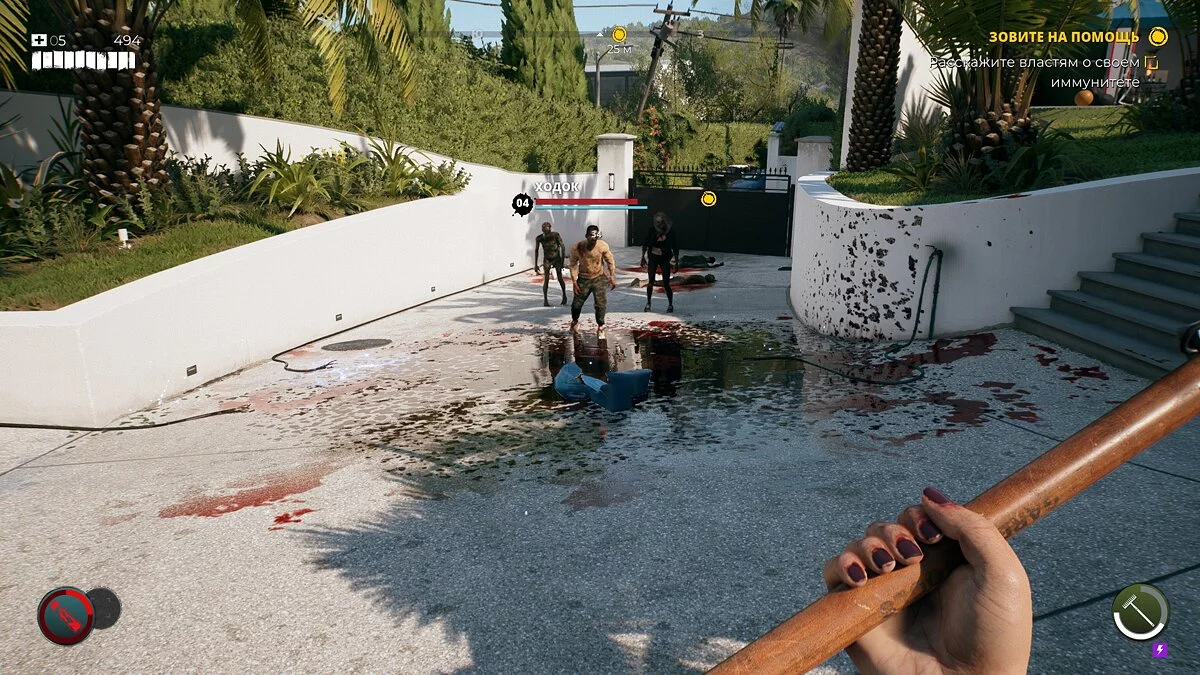 Самое неприятное — когда вас окружают зомби, избежать входящего урона не всегда получается. Уклонение абсолютно кривое, а блок ставится не моментально. Что уж говорить, даже спасительный пинок не срабатывает, когда нужно. Паттерны поведения зомби не отслеживаются, предугадать дальнейшие действия после удара практически невозможно. Хитбоксы постоянно меняются, и даже когда вы видите, что ваше оружие пробивает тушку трупоеда, игра иногда не засчитывает это за попадание.