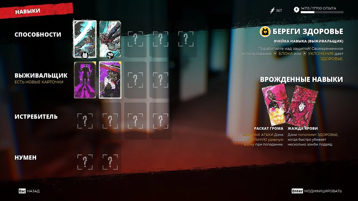Dead Island 2 не ролевая игра, но за убийство противников и выполненные квесты герой получает очки опыта. С каждым новым уровнем у персонажа растет здоровье и выносливость, а также постепенно открываются карты способностей, которые действуют как навыки и перки. Например, вы не сможете уклоняться и ставить блок на первых уровнях, эти навыки есть только на определенной карте, которую нужно разблокировать, а затем экипироваться. Есть множество перков, которые дают эффекты вампиризма, увеличение урона и быстрого восстановления выносливости, но не все выдаются за новый уровень. Некоторые карты приходится искать в открытом мире, убивая больших боссов, исследуя локации и выполняя внутриигровые достижения.