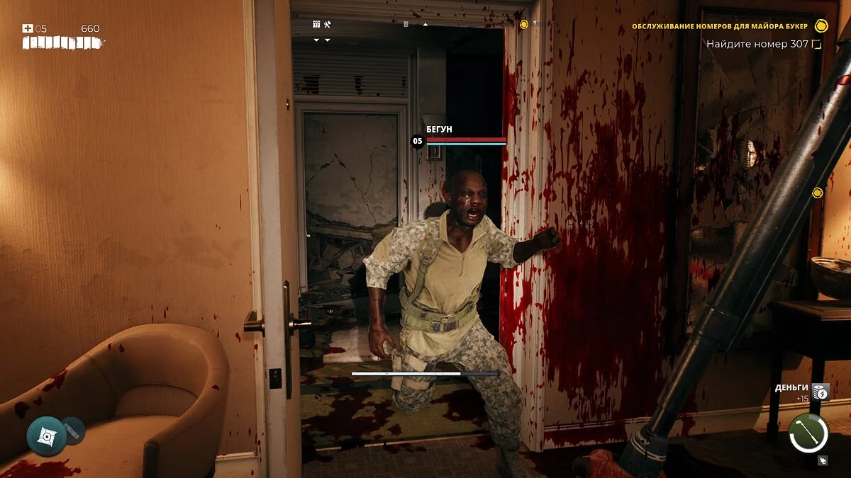 Не стоит также забывать о возможности прикрутить к топору модификацию со стихийным уроном. Одни зомби хорошо горят, а другие быстро умирают от попадания химикатов на кожу. При этом оружие недолговечно, его постоянно приходится ремонтировать на верстаке. Для ремонта требуются не ресурсы, которые лежат на каждом углу, а внутриигровая валюта. Денег в игре дают меньше, чем остальных припасов, поэтому постоянно орудовать одним и тем же ближнебойным агрегатом не выйдет.