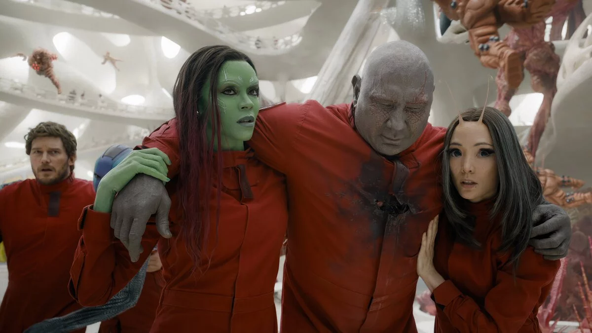 Внимательные зрители оценят окончание сюжетной арки Дракса. Изначально суровый воин присоединился к Стражам ради мести за дочь, но в итоге снова стал отцом сразу для нескольких детей. Это выглядит логично и мило, отличный финал для персонажа.