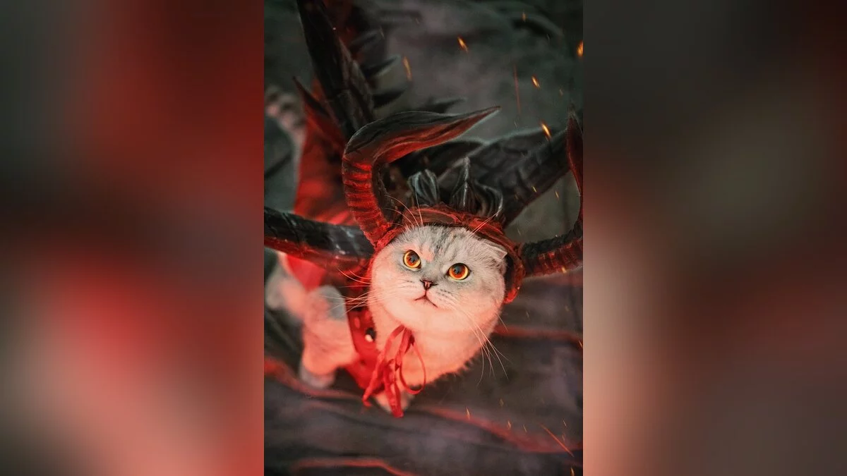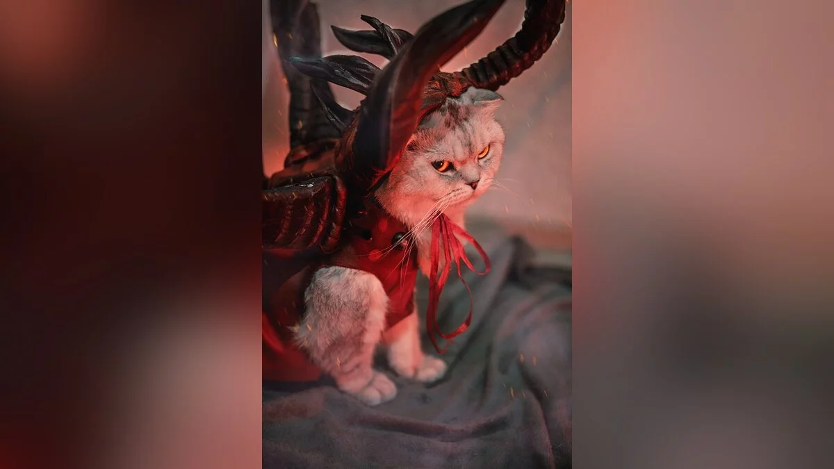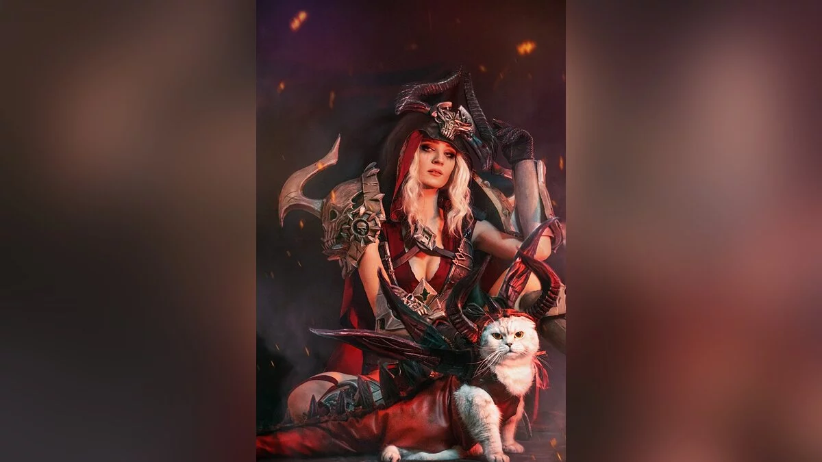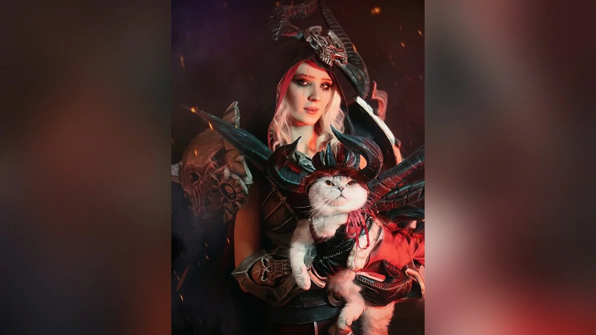 Наша соотечественница Megalcarmen известна по сложным крафтовым образам. Для фотосета в образе охотницы из Diablo девушка изготовила броню для своего котика. Получился самый милый демон на свете.