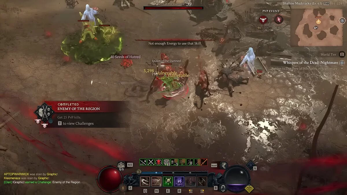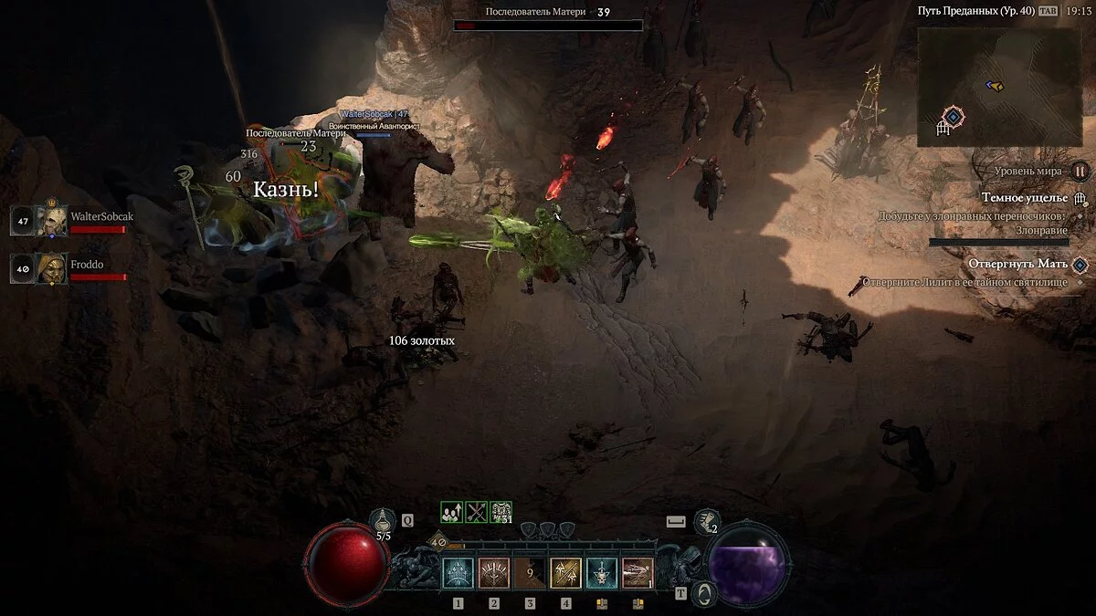 Получив характерные черты MMO, Diablo 4 не работает в сольных партиях. На поздних уровнях все дополнительные активности на карте в одиночку выполнить практически невозможно. Каждое подземелье превращается в очередную рутинную работу, а от количества противников, которых необходимо уничтожить, голова идет кругом. Из-за этого буквально испаряется дух одиночного приключения. Ведь в мультиплеере все работает намного лучше и увлекательнее. Позвал напарников — и подземелье уже не представляет для тебя особой угрозы. Вот только без системы глобального чата приходится самостоятельно искать сопартийцев в городах или просить помощи у пробегающих мимо игроков.