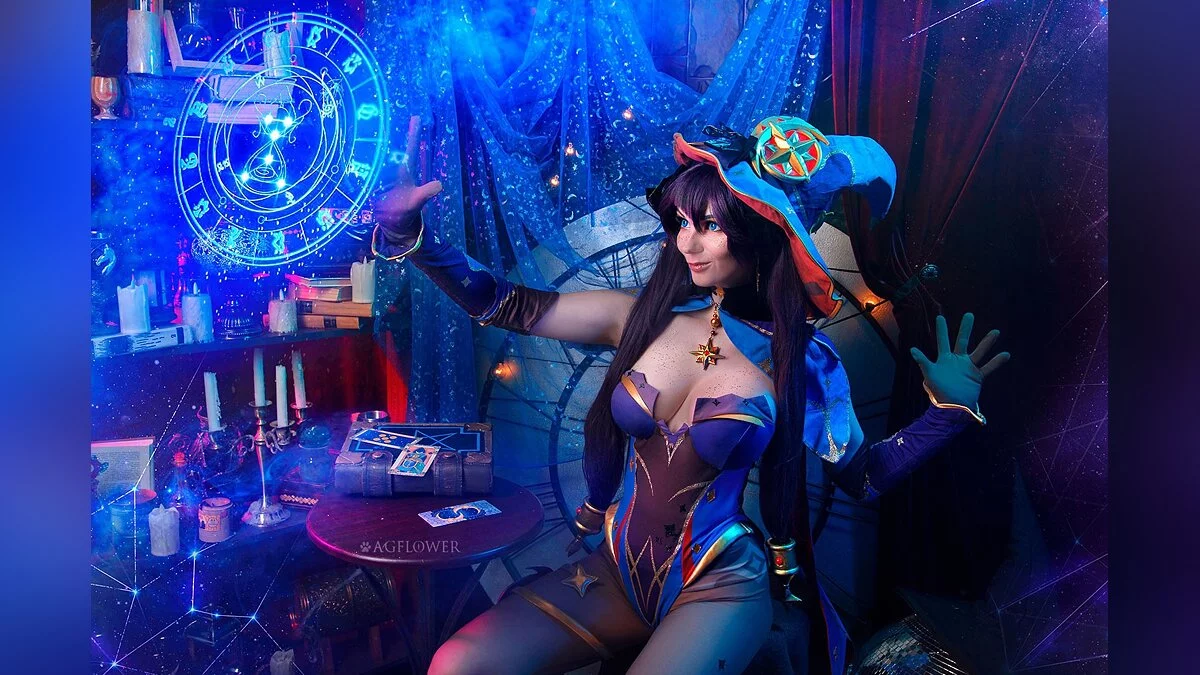 Мона — честный астролог со своими принципами. Она не готова врать клиентам и приукрашивать прогнозы по поводу их будущего. Такой подход нравится далеко не всем, ведь люди предпочитают слушать сладкую ложь, а не горькую правду. В бою Мона полагается на различные умения, которые связаны со стихией воды. Косплей на неё сделала AGFlower.