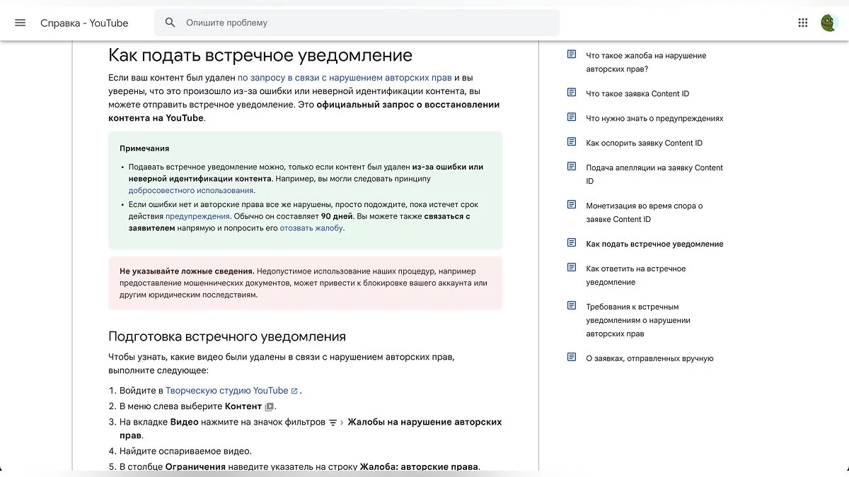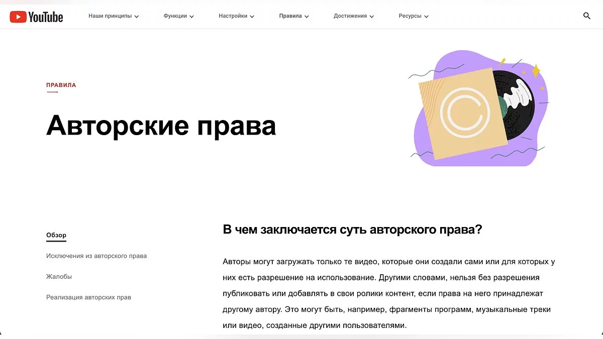 Google даёт подробную справку о нарушениях, где указывает, какие видео подпадают под действие авторских прав, а какие — нет. Однако здесь есть важный нюанс. Несмотря на то, что правила плюс-минус одинаковые для каждой страны и исходят из обычной человеческой логики, YouTube слишком много ссылается на законодательства, разрешая таким образом многообразие способов решения конфликта.