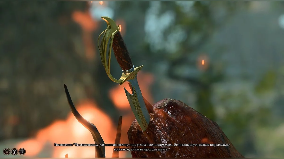 Что касается лагеря, то это не просто место, где можно поболтать — в нём заключена важная механика, которая перекочевала из настольной D&D. Полноценный отдых и сбор провианта восполнит силы и ячейки заклинаний у всего отряда. Кроме того, во время сна периодически происходят сюжетные события. Например, хранитель главного героя, которого мы создаем в самом начале игры, навещает героя во время сна и постепенно раскрывает главную интригу истории.