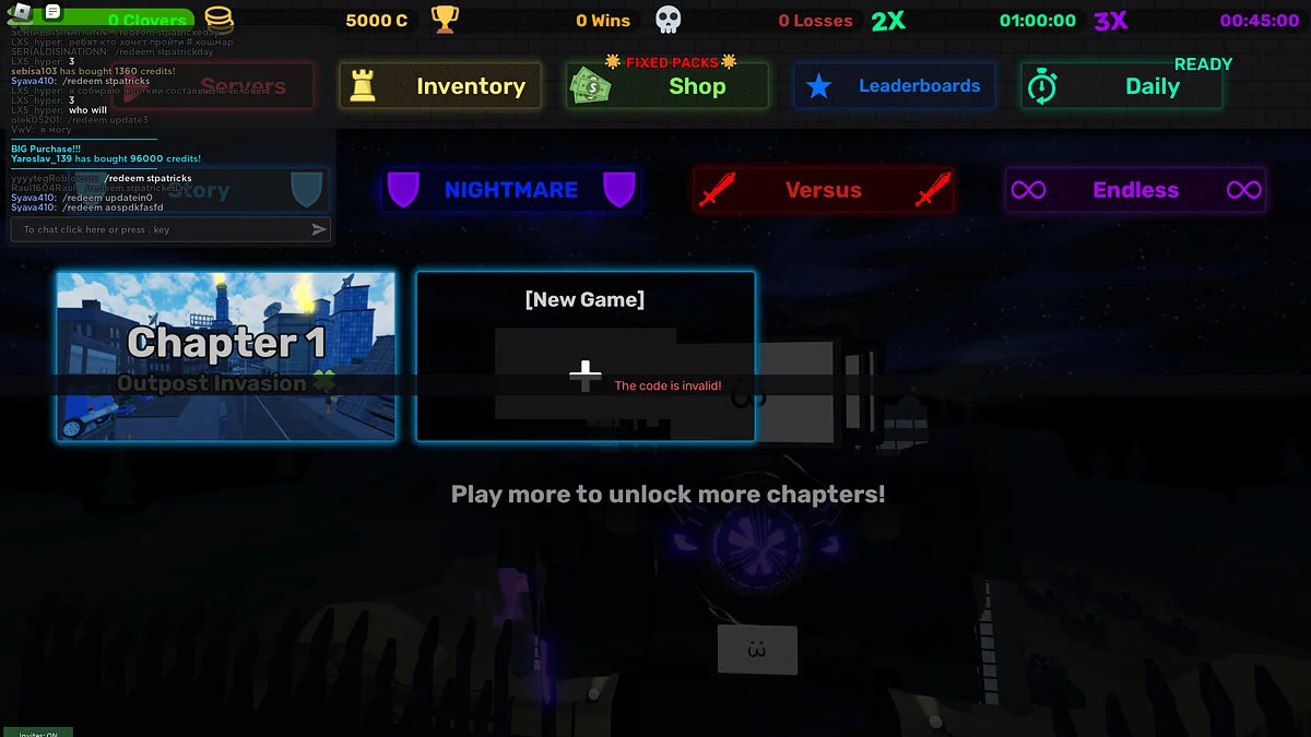 - /redeem 5kplayers — Используйте код для получения 1 000 кредитов и двух кейсов с усилением.