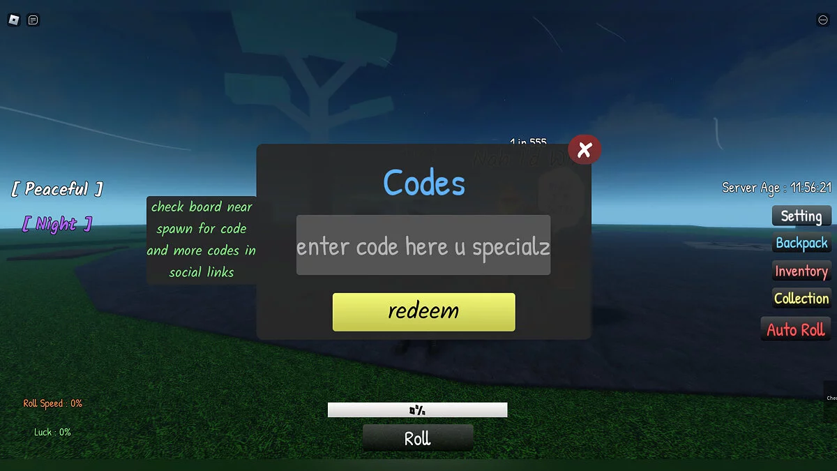 Как активировать коды в Cursed RNG