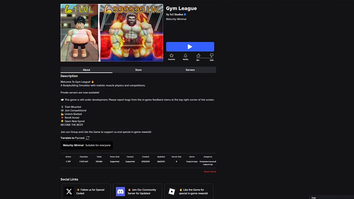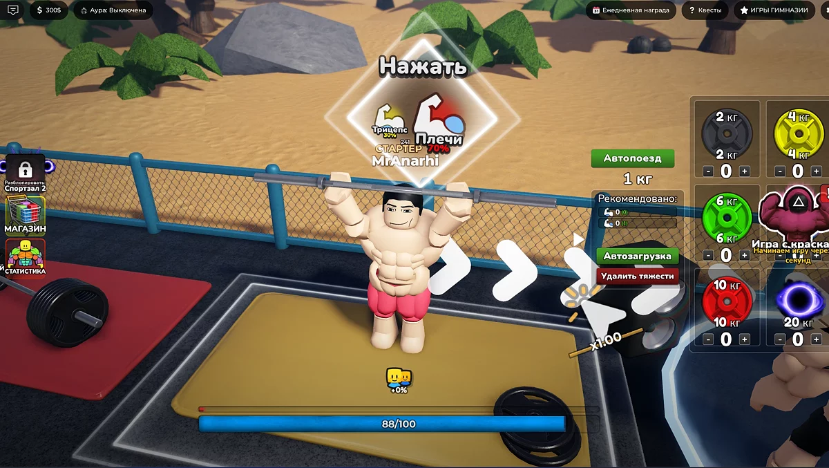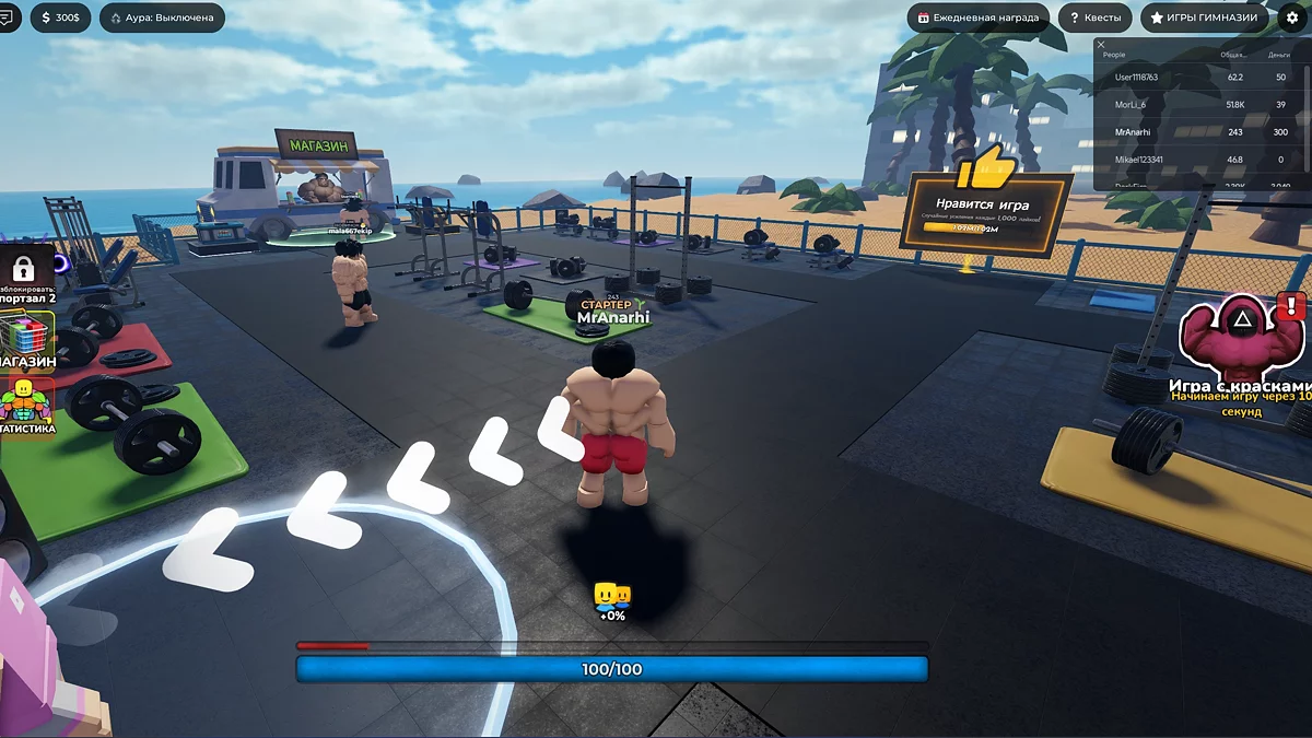 В Gym League игроки могут прокачивать мышцы своих персонажей и участвовать в соревнованиях. Игра предлагает реалистичную модель прокачки тела и множество вариантов кастомизации, включая уникальные ауры и аксессуары, что делает каждого персонажа особенным. В проекте также есть турниры, где оценивается не только сила, но и внешний вид героев.