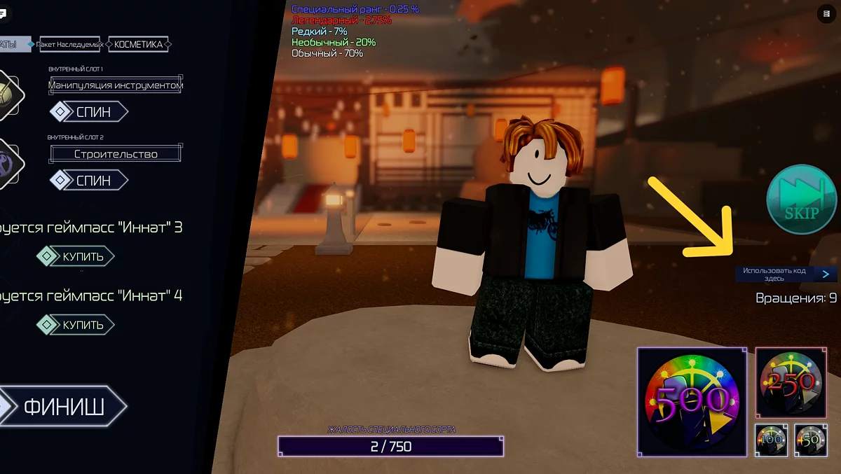 - 50K_FOLLOWERS — 50 спинов + 1 час 2x EXP;