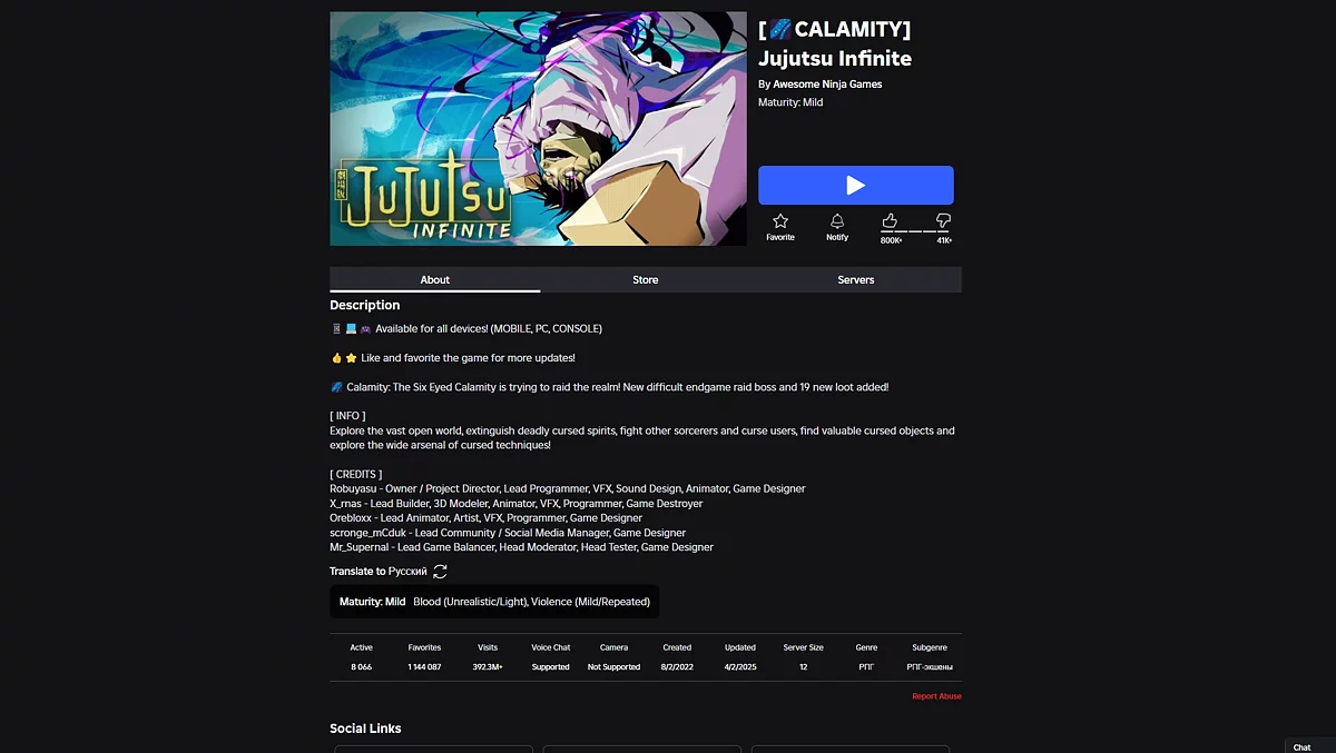 - Официальным Discord-сервером Jujutsu Infinite — разработчики анонсируют там промокоды.