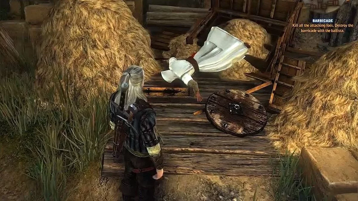В Assasin's Creed принято прыгать в огромные кучи сена, чтобы спастись от нависшей опасности, либо просто мягко приземлиться. Но в Witcher 2, кажется, Геральт обнаружил, что это не самое лучшее место для падение: об этом говорит, как минимум, труп Альтаира меж куч сена. А может, Геральт сам испортил его посадочную полосу? Негодяй.