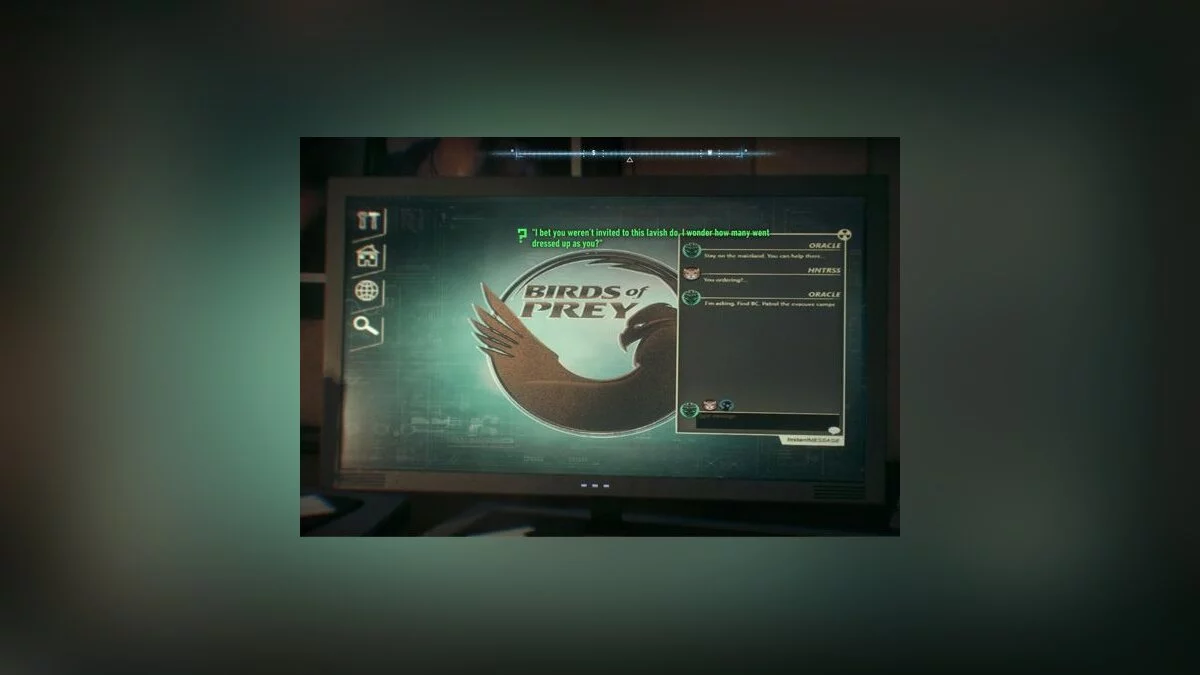 На дисплее одного из компьютеров, находящегося в здании Готэма, можно увидеть надпись «Хищные птицы». Хищные птицы — это серия комиксов и телесериал про супергероинь Охотницу (Хелена Кайл) и Оракул (Барбара Гордон).