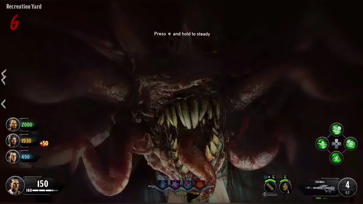 Эту пасхалку можно найти в мини-кампании зомби режима «Кровь мертвецов». Для начала вам требует открыть доступ к локации Catwalk, а затем пробраться через армию зомби (их там очень много). Когда выйдете на открытую местность, перед вами будет огромная яма. Чтобы увидеть пасхалку, посмотрите в окно находящегося за ямой здания через оптический прицел снайперской винтовки. Спустя несколько секунд на экране появится скример с ужасным лицом монстра.