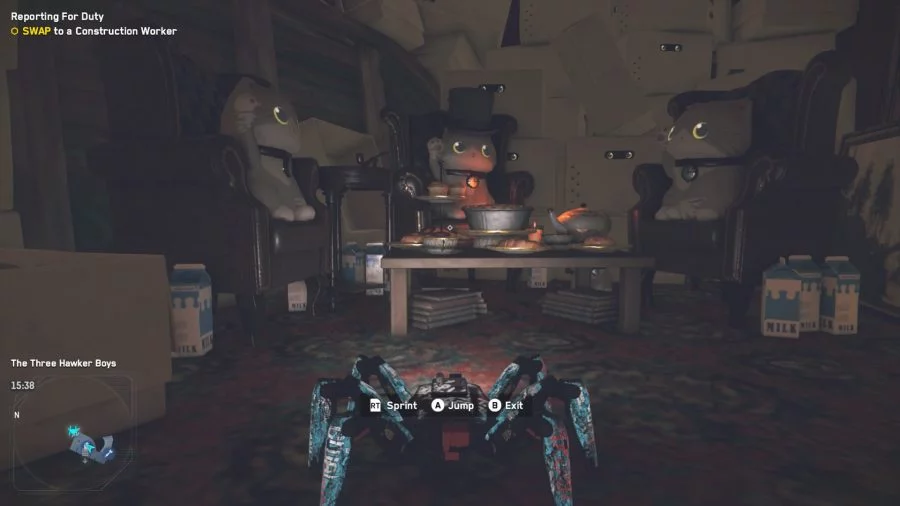 Перейдите через Лондонский мост в Саутуарк (Southwark). Войдите в паб Three Hawkers Boys, который находится справа от вас, когда сходите с Лондонского моста. Поднимитесь наверх и используйте дрона-паука. Пройдите под камин, чтобы открыть секретную комнату, полную игрушечных кошек, которые пьют чай за столом. Вокруг полно молочных пакетов.