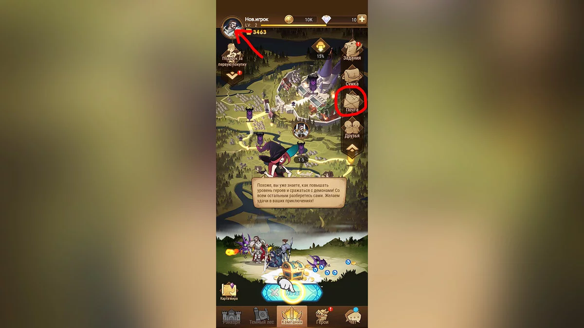 - Возвращаемся в игру и проверяем раздел «Почта», кнопка расположена в правом выпадающем меню;