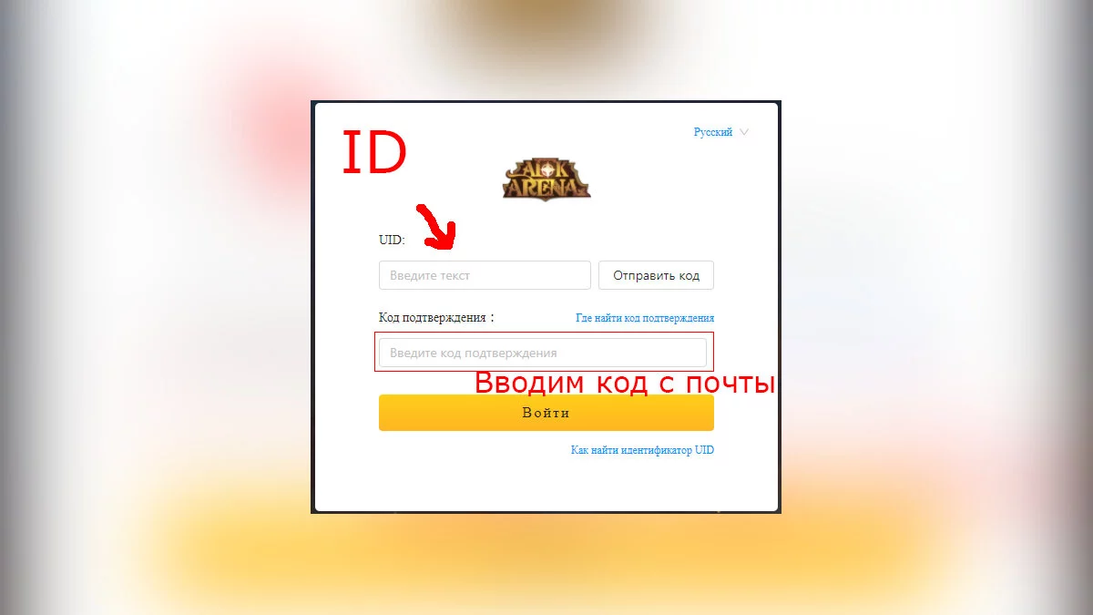 - В поле UID указываем ID игрока, который можно узнать в профиле внутри игры. Нажимаем кнопку «Отправить код» (Send Code);