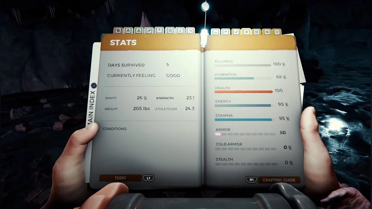 Чтобы активировать консоль, в главном меню, до запуска самой игровой сессии, введите команду developermodeon. Затем загружайте своё сохранение. Клавиша F1 вызывает саму консоль. F2 покажет лог и статус. F3 откроет параметры вашего героя — атлетизм, вес, силу и число калорий. Повторное нажатие на клавиши F1, F2 и F3 закроет соответствующее окно.