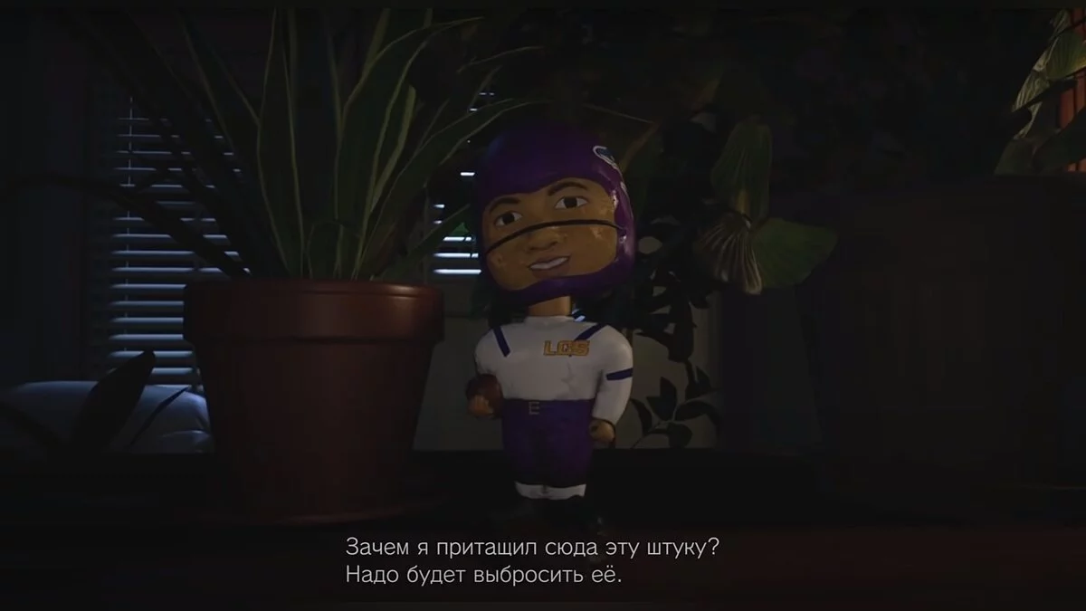 Всё в том же доме вы можете заметить на одном из шкафов игрушечного футболиста. В седьмой части эти болванчики были предметами коллекционирования.