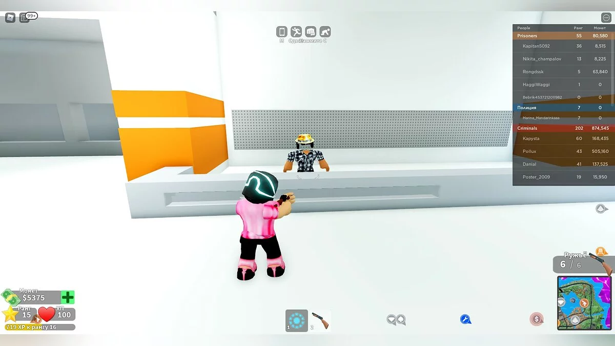 - Все игроки могут использовать оружие. Чтобы вооружиться, осмотрите комнату охраны в тюремном блоке, базу бандитов в порту или оружейный магазин;