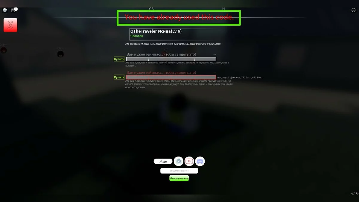- You have already used this code — ошибка означает, что вы уже использовали промокод ранее. Любой код для игры Project Slayers можно использовать только один раз.