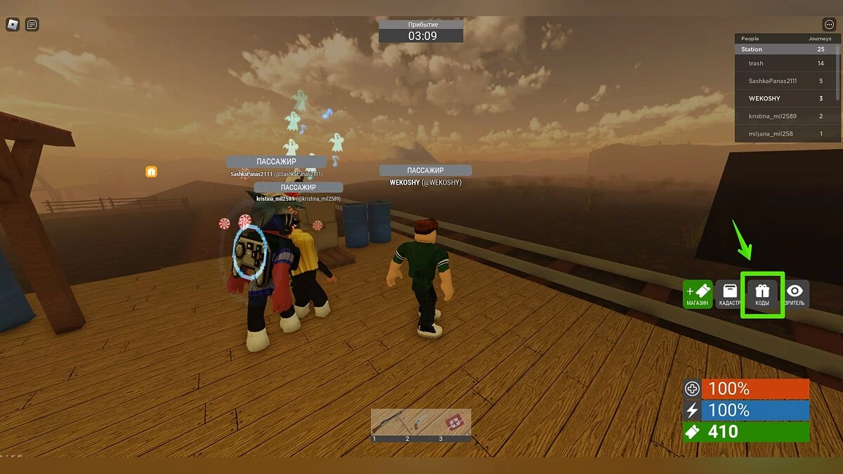 - Нажмите на кнопку «Коды» со значком подарка в правой части экрана;