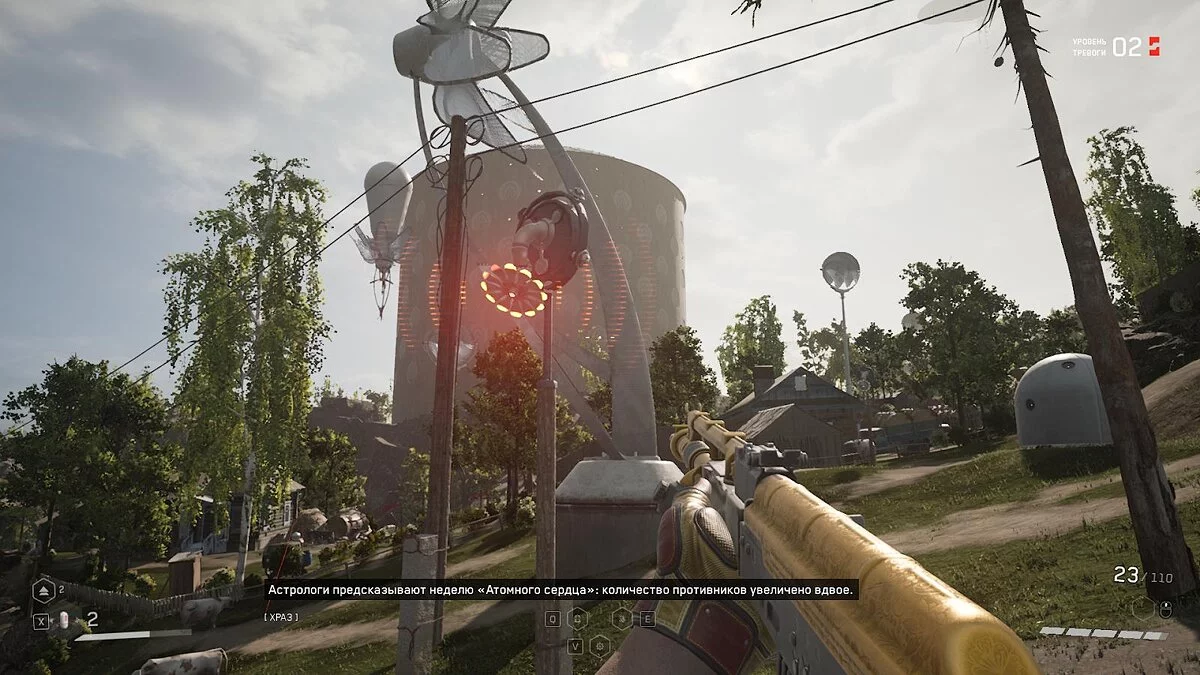 Когда вы поднимаете тревогу 2 уровня, иногда будет произноситься фраза: «Астрологи предсказывают неделю Атомного сердца: количество противников увеличено вдвое». Это отсылка к популярной фразе из игры Heroes of Might and Magic 3, которая давно уже стала мемной.