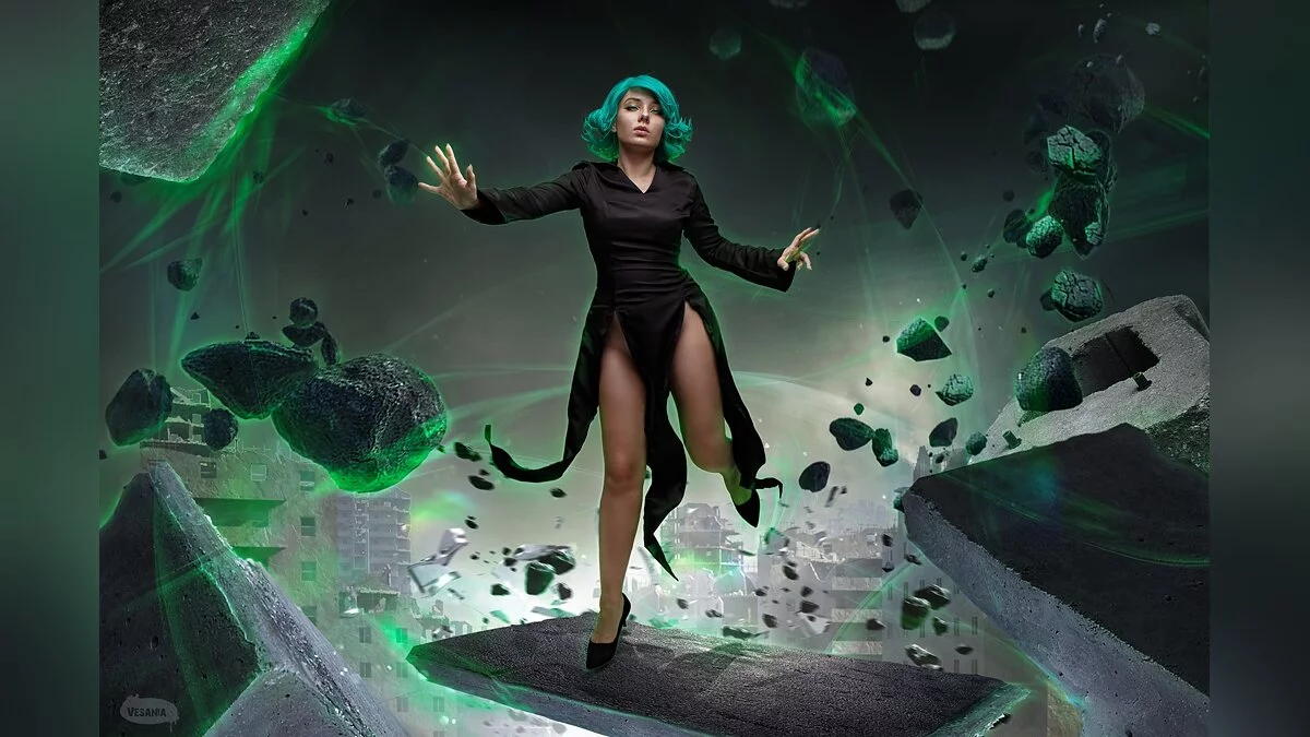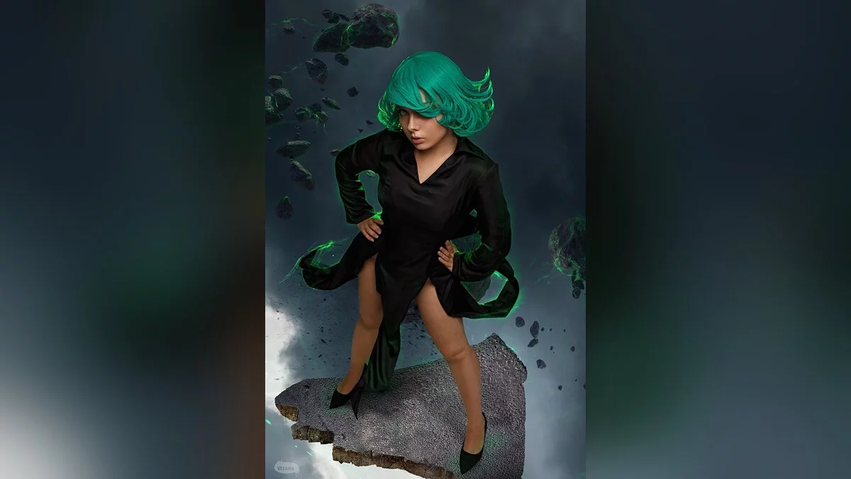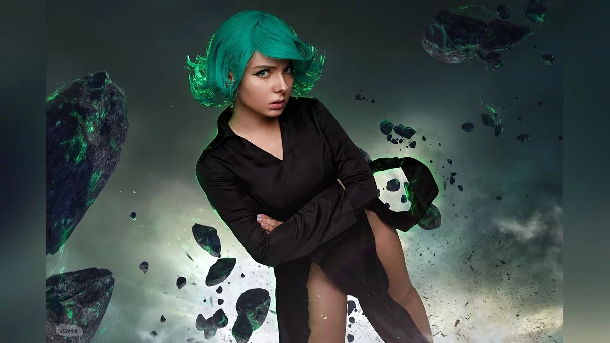 One Punch Man — веб-комикс, который публикуется в открытом доступе с 2009 года. На его основе была написана манга и снято аниме. Основная история посвящена жутким монстрам и героям со сверхспособностями, которые сражаются с ними. Среди них есть Тацумаки, также известная как Торнадо Ужаса. Эта миниатюрная девушка обладает огромной силой. Например, она может поднимать в воздух целые города. Косплей на милашку с зелёными волосами сделала Kavaynaya Kote.