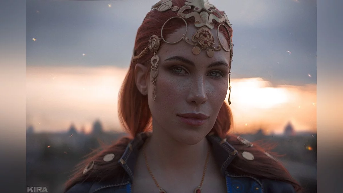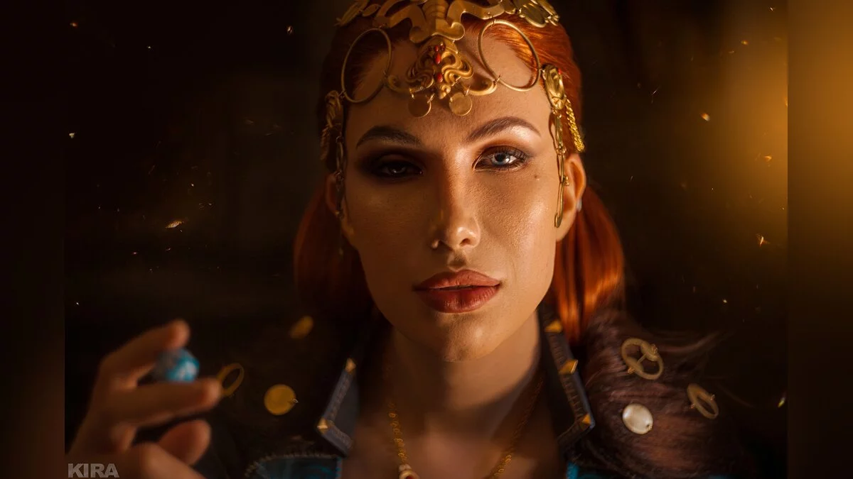 Серия «Ведьмак» (The Witcher) показала, какими должны быть романы между героем и его возлюбленными, чтобы они вызывали яркие эмоции. Например, Трисс в третьей части решила разжечь былые чувства Геральта и пригласила его на бал-маскарад. Там она появилась в роскошном платье с открытыми плечами и как бы случайно оказалась в объятиях нашего ведьмака. Ему осталось лишь поцеловать её, чтобы вернуть расположение чародейки. Косплей на эту рыжеволосую красавицу сделала Илона Бугаева.