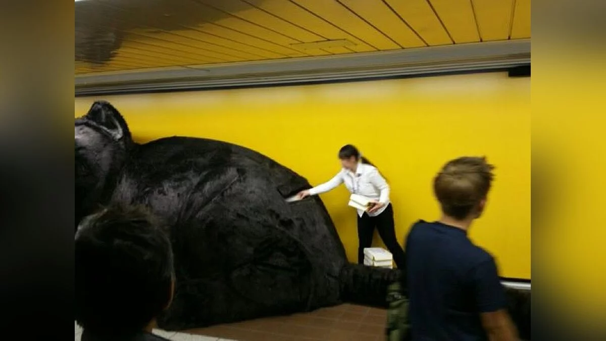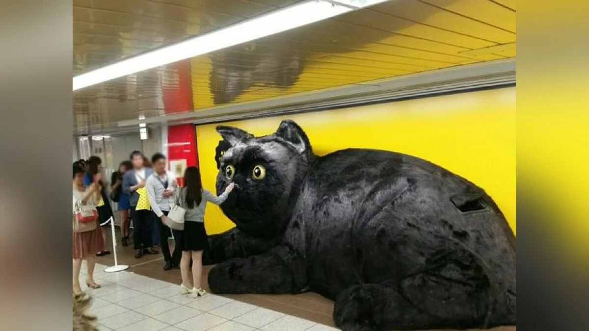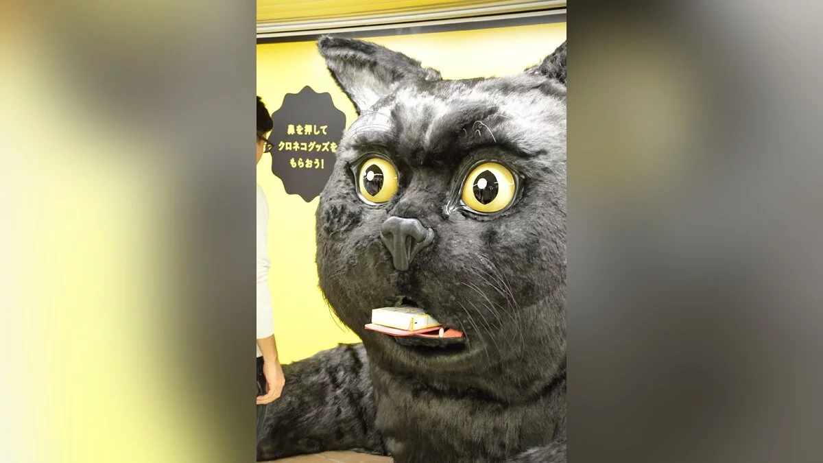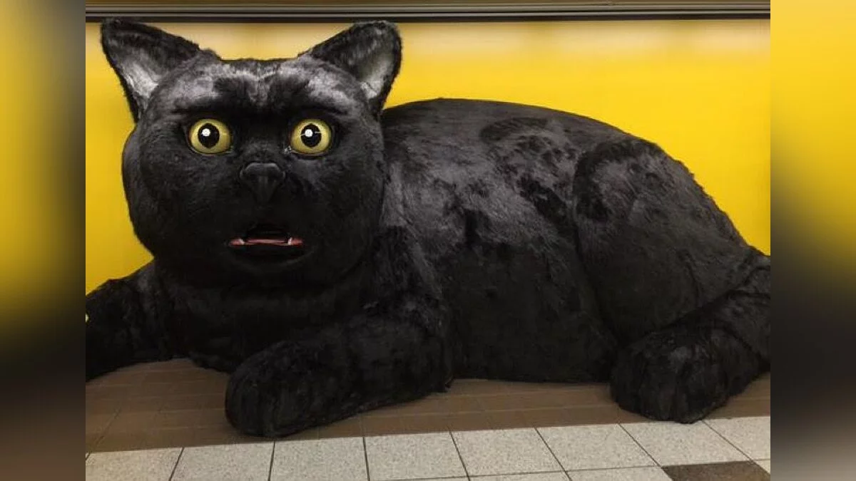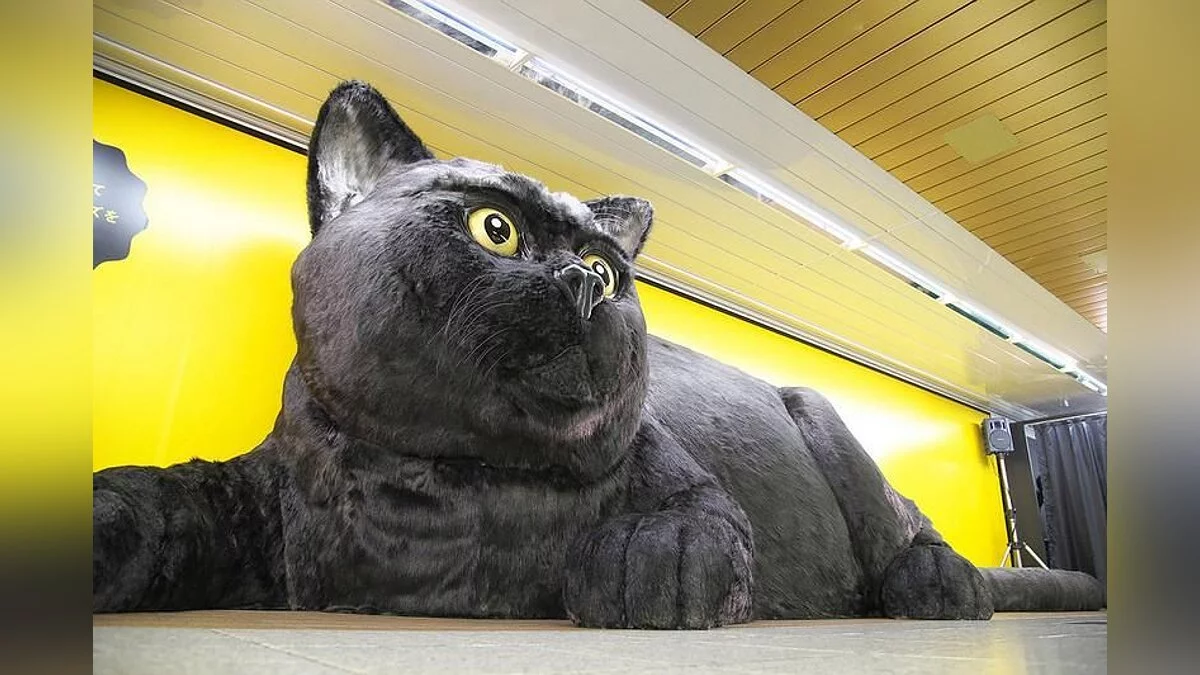 - В Японии поставили вот-такого здоровенного кота, который выдает подарки, если нажать на его нос: