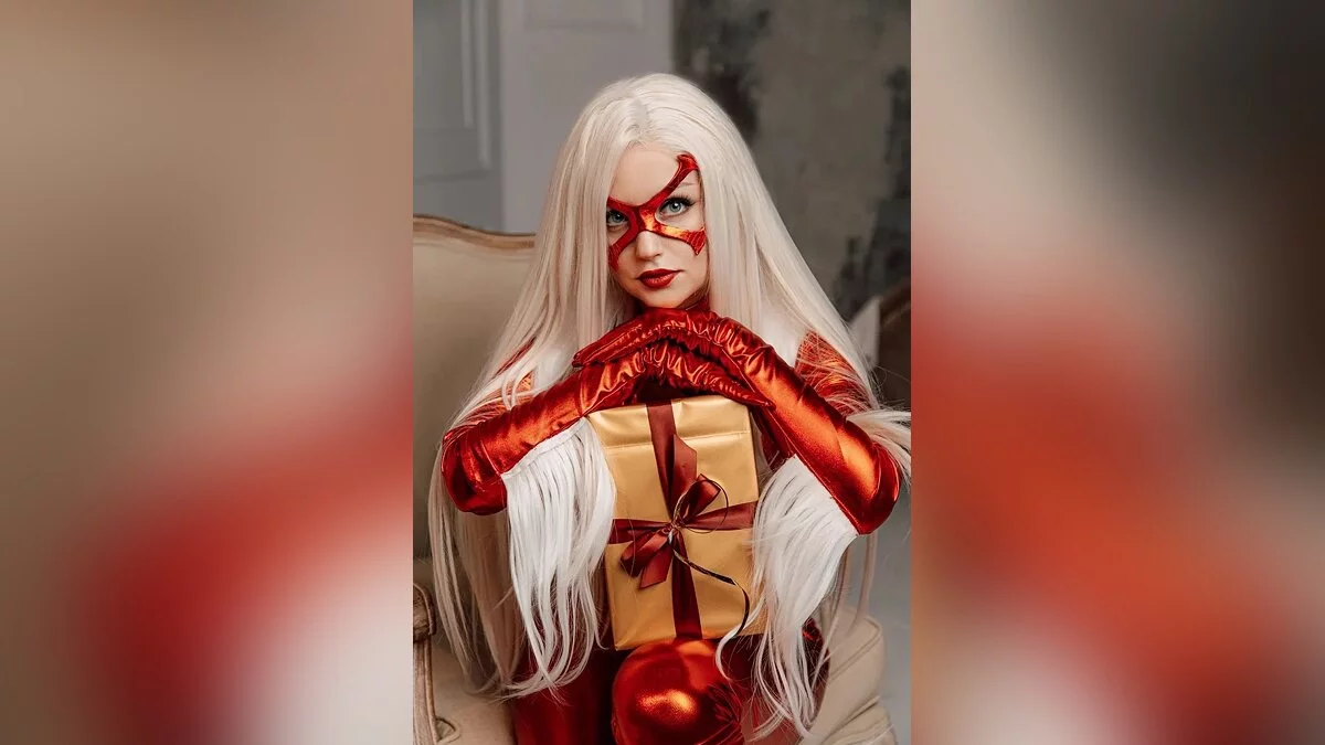 Я большой фанат серии о Человеке-пауке от Marvel, и Чёрную кошку делала уже в нескольких вариантах. Сначала это была версия из вселенной Earth 616, потом — классическая, и вот теперь я решила сделать праздничный вариант этого образа.