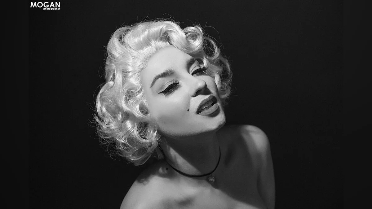 Идея этой съёмки пришла в голову одновременно и мне, и фотографу. Образ рискованный, ведь легко можно не попасть по внешности. При его создании мы детально рассматривали макияж Мерилин, изучали мимику, воссоздавали платье вплоть до мелочей и декора. На самом деле, её платье бежевое. Это было сделано специально, чтобы на чёрно-белой пленке оно выглядело именно белым, а не серым. Мы же шили белое платье, более привычное зрителю.