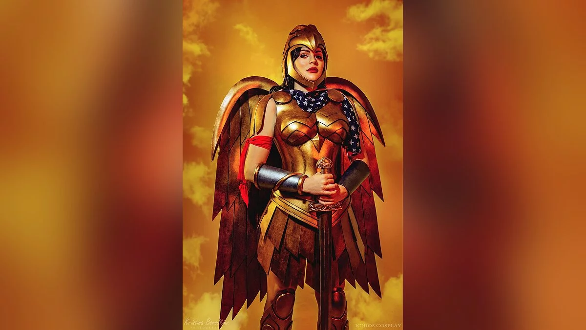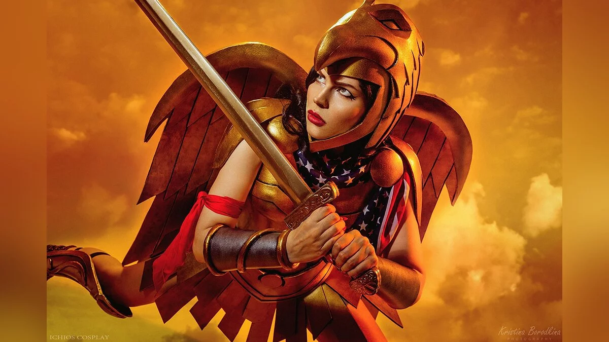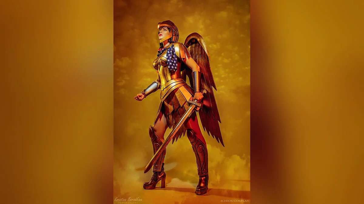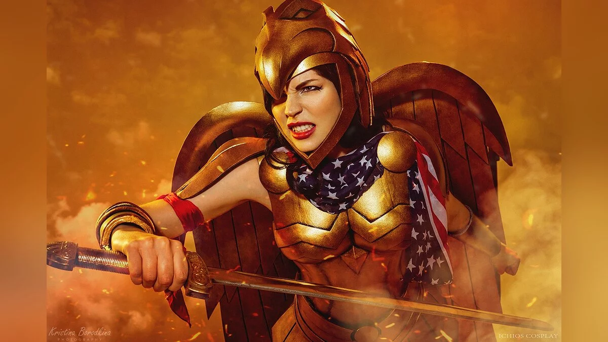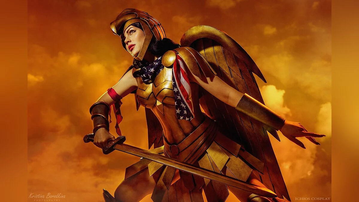 Чудо-женщина в более привычном наряде уже появлялась в наших подборках. А в фильме «Чудо-женщина: 1984» (Wonder Woman 1984) мы впервые увидели Диану Принс в доспехах «Золотой орёл». Эта броня принадлежала Астрии, величайшей из амазонок, когда либо живших на Земле. Косплей на чудо-женщину в этом костюме сделала Аня Ichios.