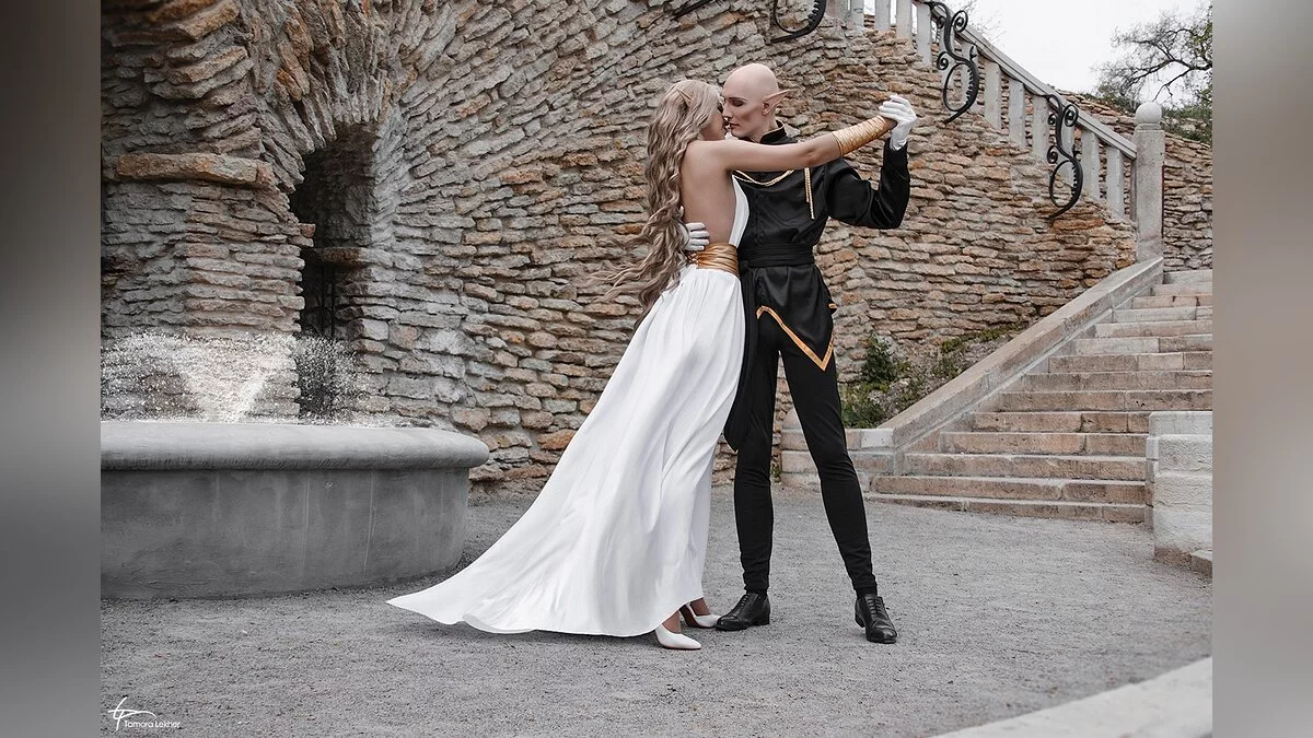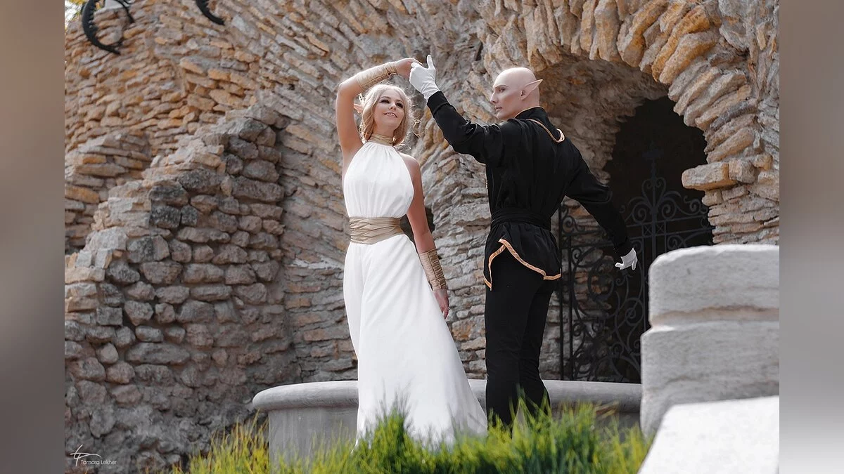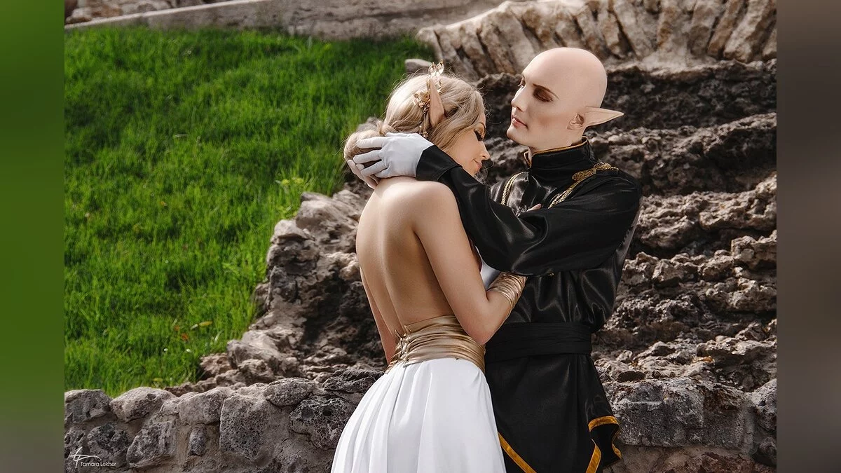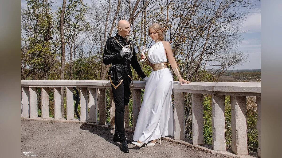 Ася Митина и Александр Александров неоднократно делали косплей на эльфийку-инквизитора и мага Соласа из третьего Dragon Age. На этот раз они обыграли бал в городе Халамширале. Отметим, что их костюмы отличаются от оригинальной игры — за основы нарядов взяты арты от художницы Nipuni.